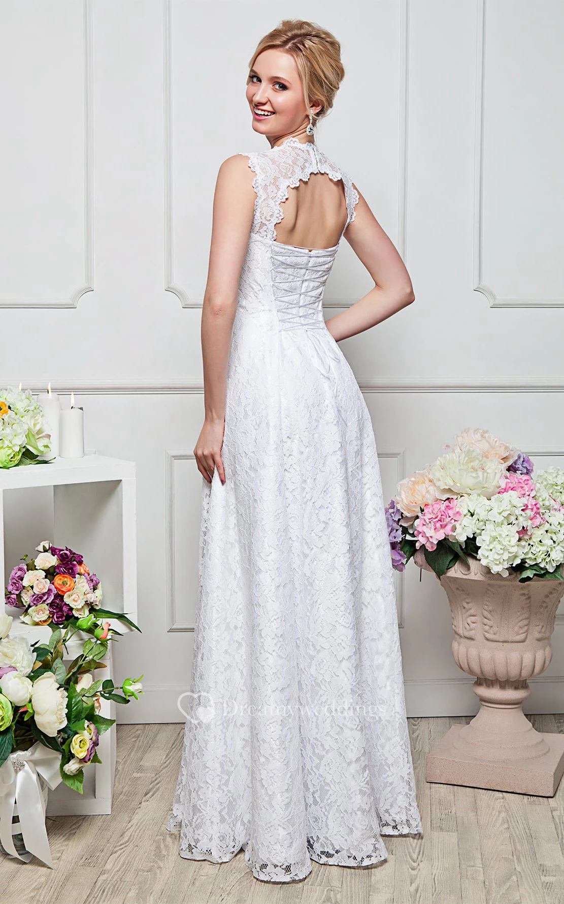 a-line Floor-length Sweetheart Short Sleeve Lace Keyhole Dress