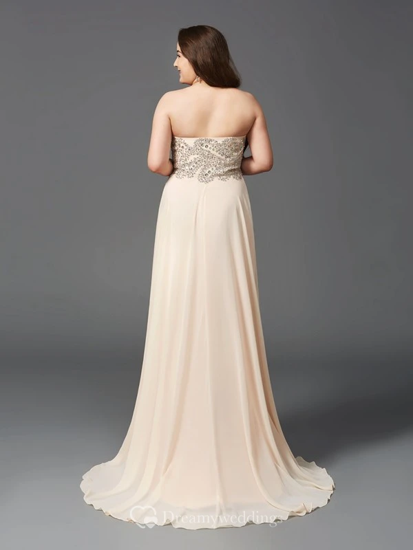 A-line Floor-length Sweetheart Sleeveless Chiffon Beading Pleats Brush Train Dress