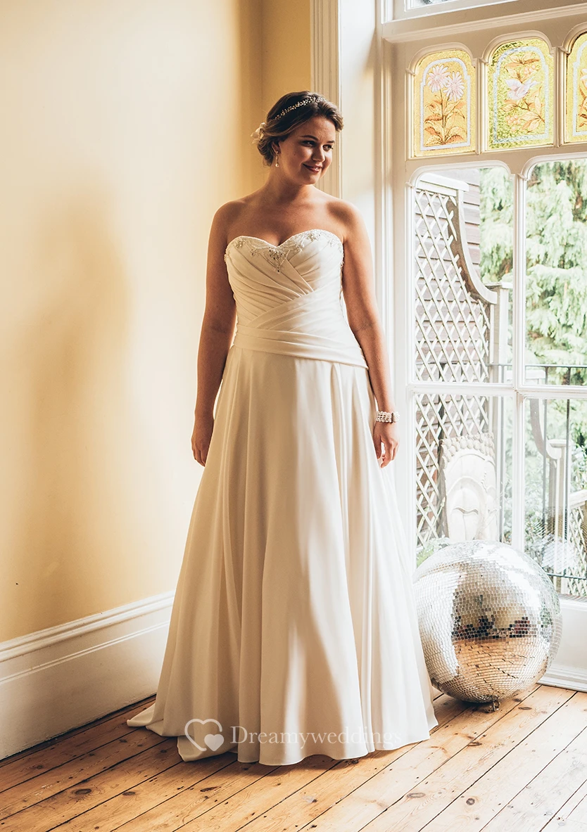 A-Line Floor-Length Sweetheart Sleeveless Chiffon Criss Cross Beading Sweep Train Criss cross Dress