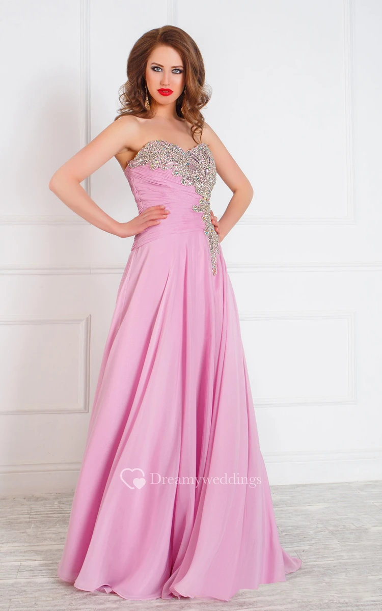 A-Line Floor-Length Sweetheart Sleeveless Tulle Ruffles Beading Zipper Dress