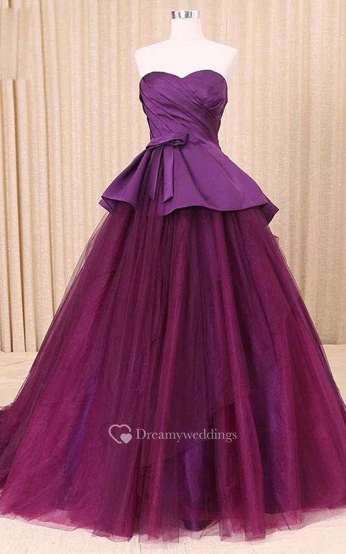 A-Line Floor-Length Sweetheart Sweep Train Zipper Corset Back Tulle Lace Satin Dress