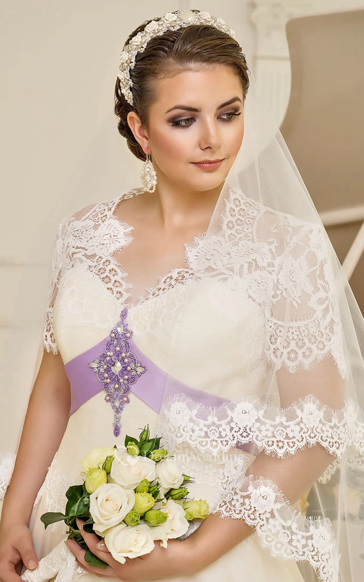 A-Line Floor-Length V-Neck Cap-Sleeve Corset-Back Lace Dress With Beading And Sash
