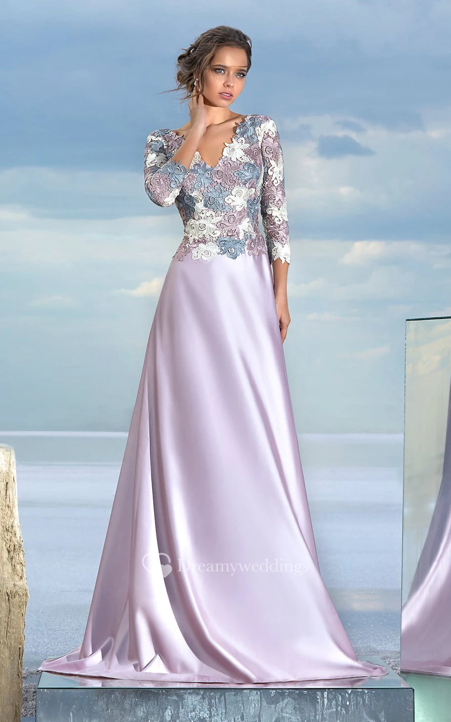 A-line Floor-length V-neck Long Sleeve Satin Low-V Back Dress