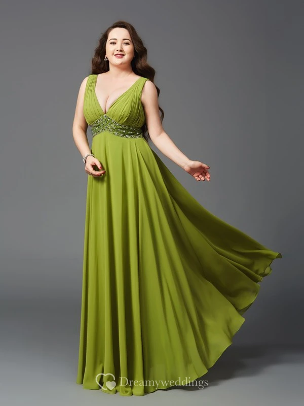 A-line Floor-length V-neck Sleeveless Chiffon Waist Jewellery Pleats Low-V Back Dress