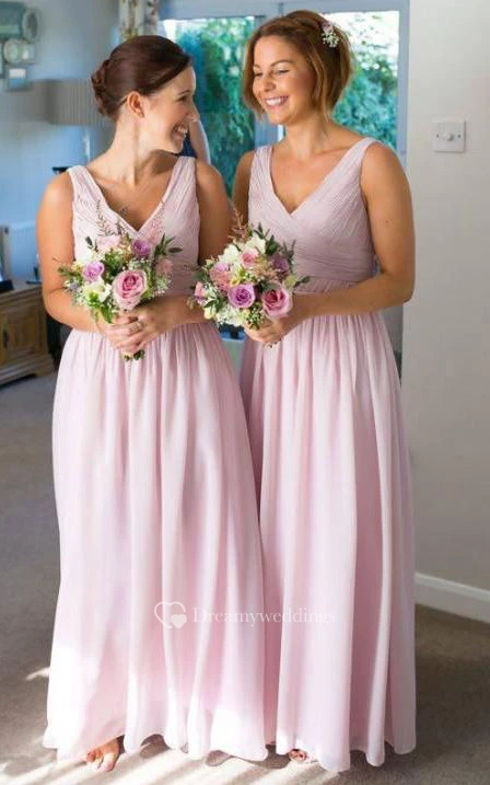 A-line Floor-length V-neck Sleeveless Zipper Chiffon Dress