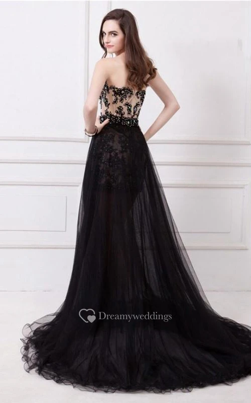 A-Line Front-Split Appliques Sequins Prom Dress With Detachable Train