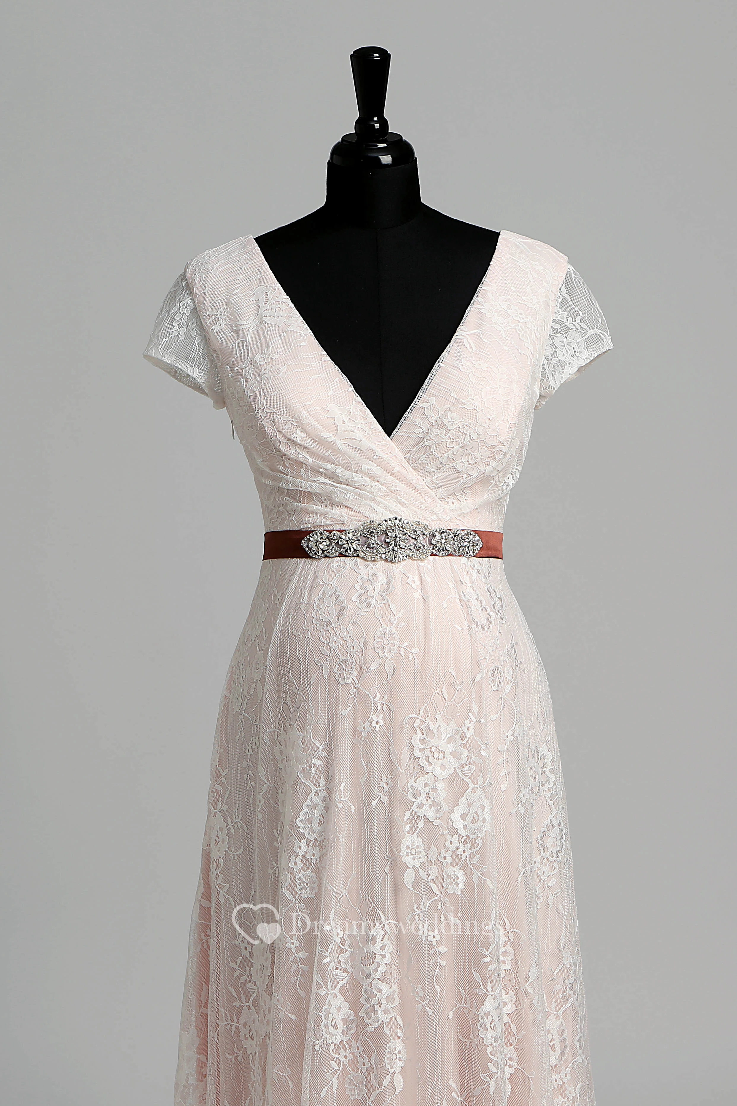 A Line Garden Cap Short Sleeve Maternity Wedding Dress