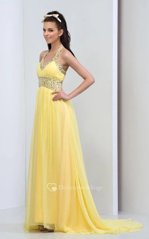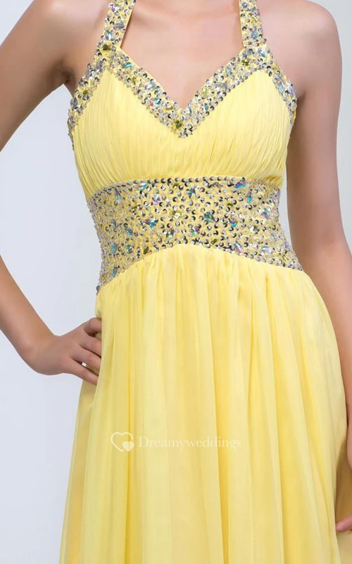 A-Line Halter Beaded Ruffles Prom Dress