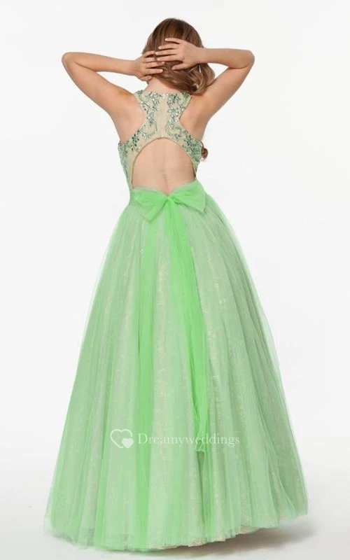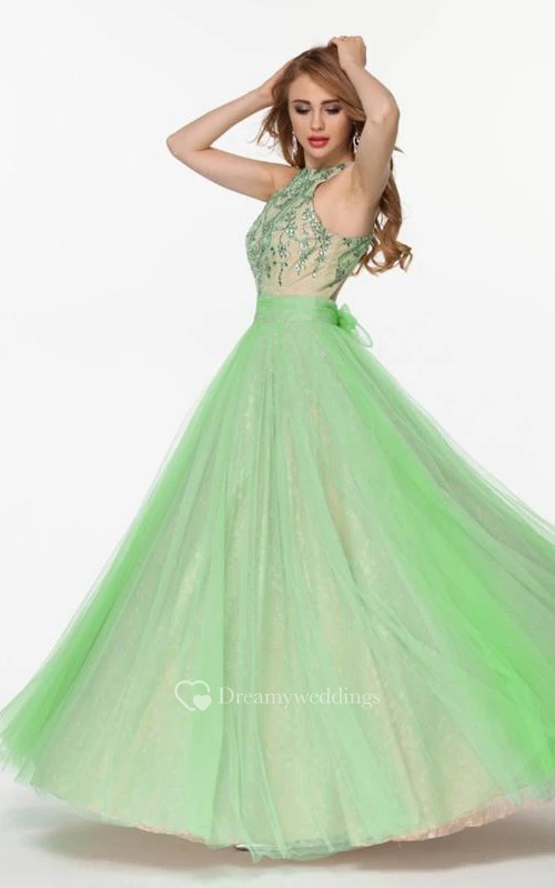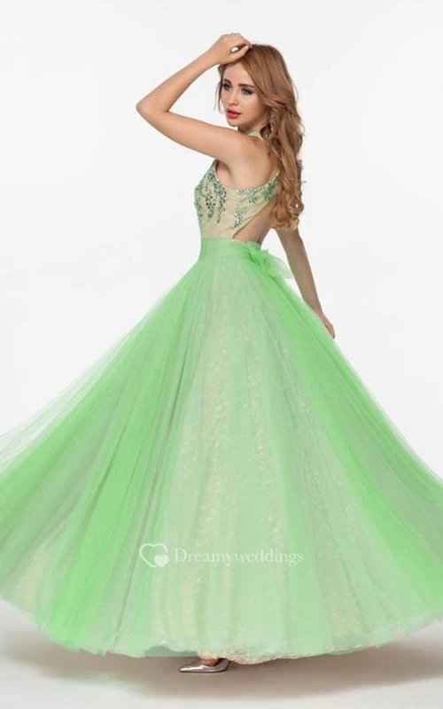 A-Line Halter Beading Bowknot Floor-Length Prom Dress