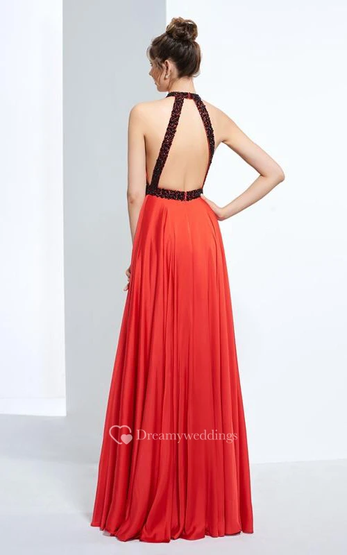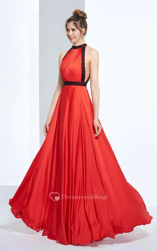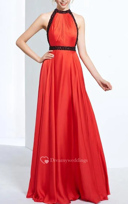 A-Line Halter Beading Draped Floor-Length Prom Dress