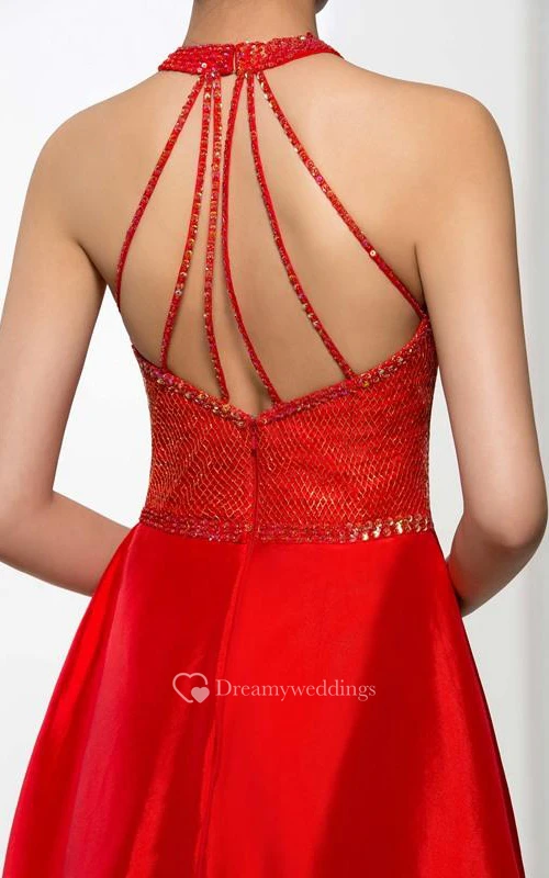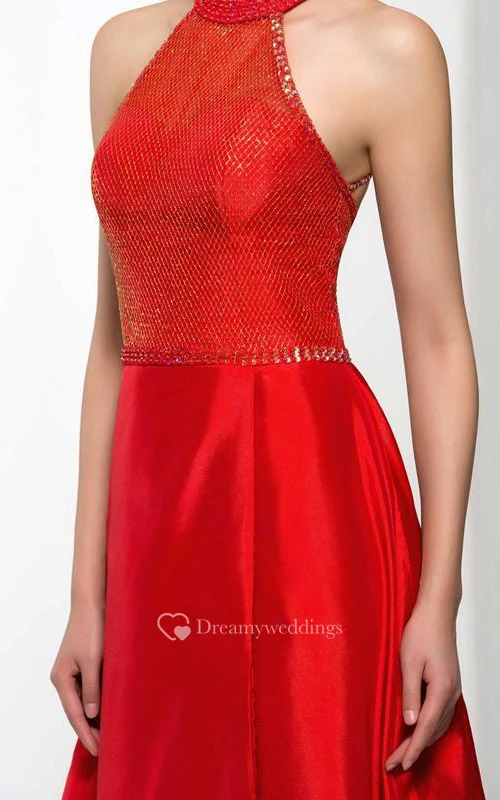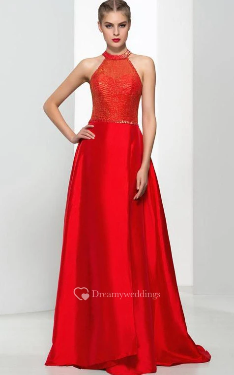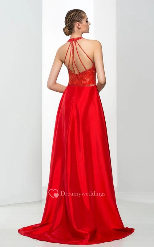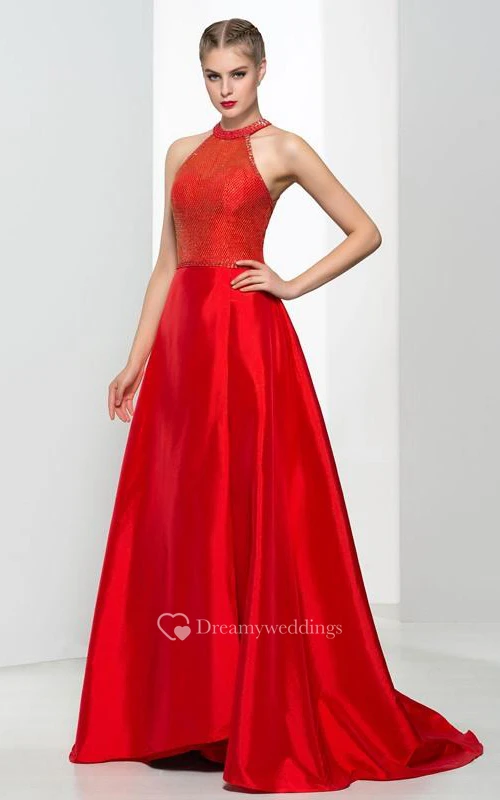 A-Line Halter Beading Sequins Long Prom Dress