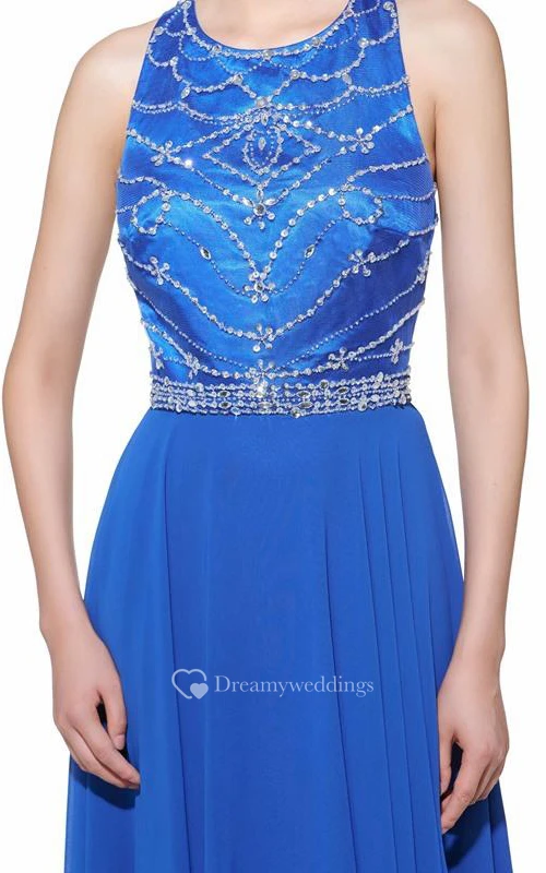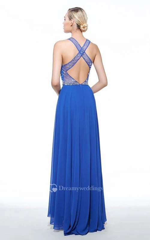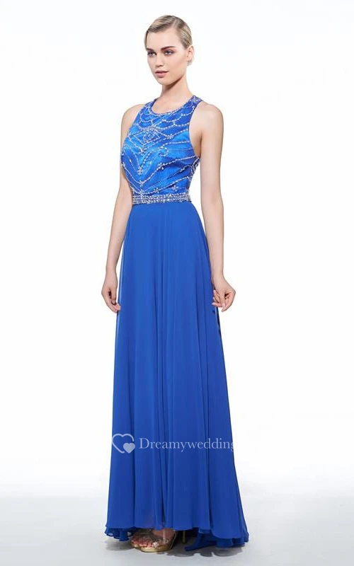 A-Line Halter Beadings Floor-Length Prom Dress