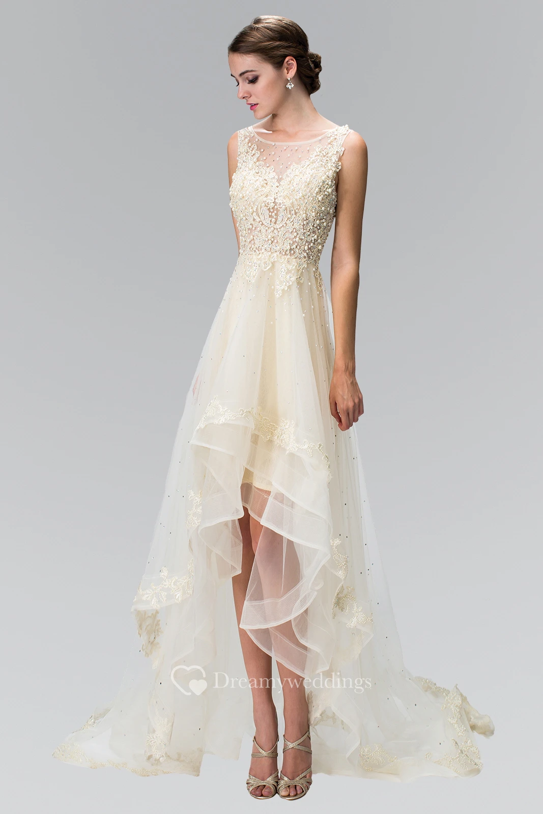 A-Line High-Low Scoop-Neck Sleeveless Tulle Dress With Beading And Ruffles