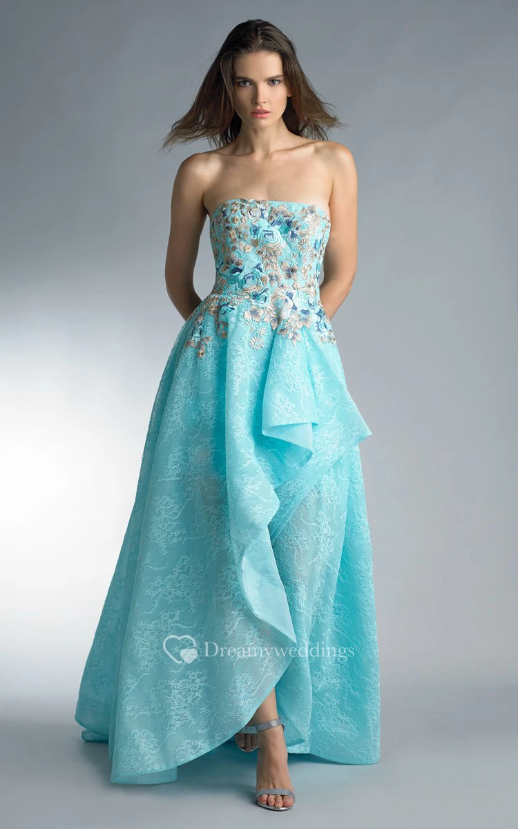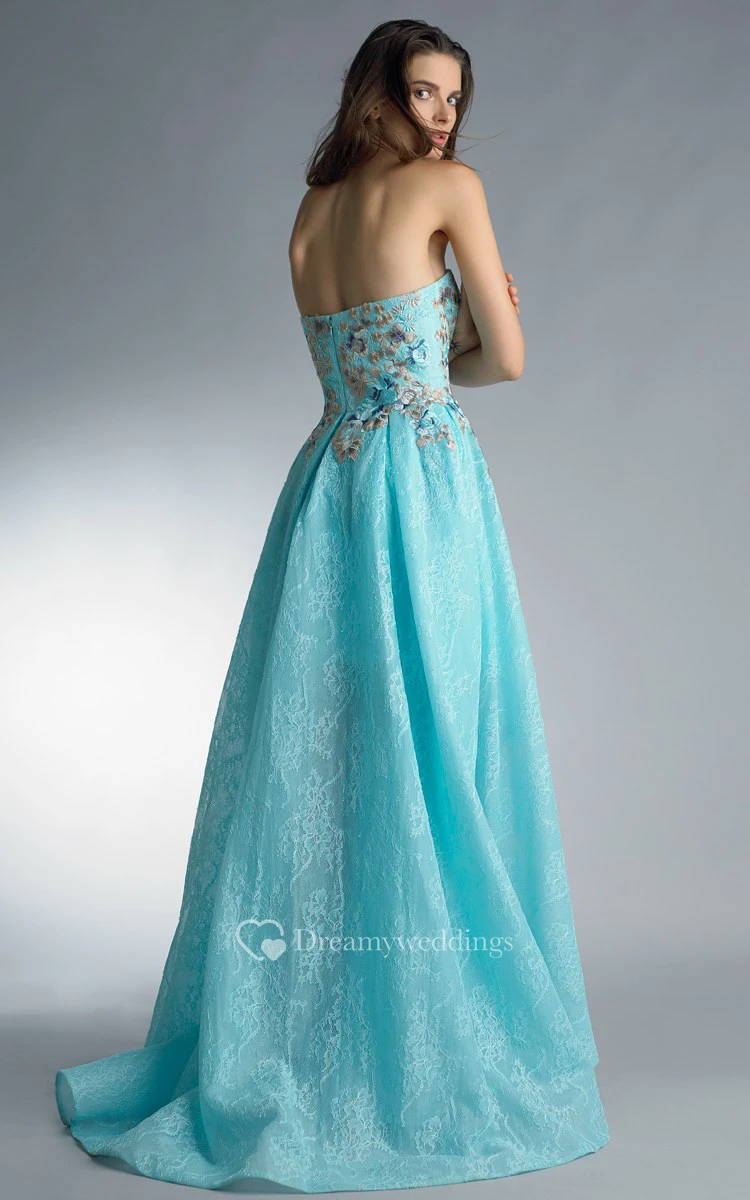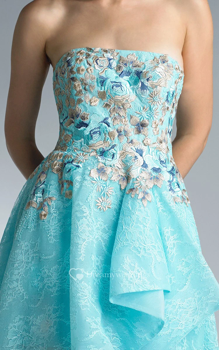 A-line High-low Strapless Sleeveless Lace Backless Dress
