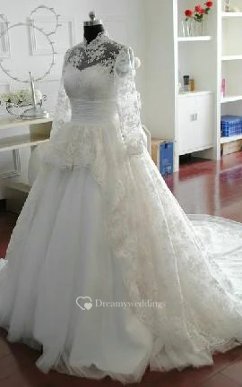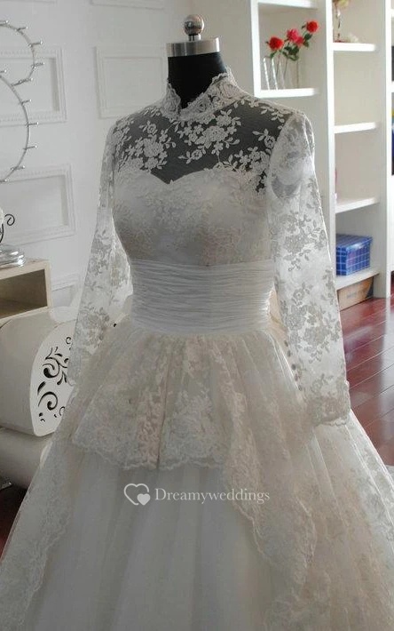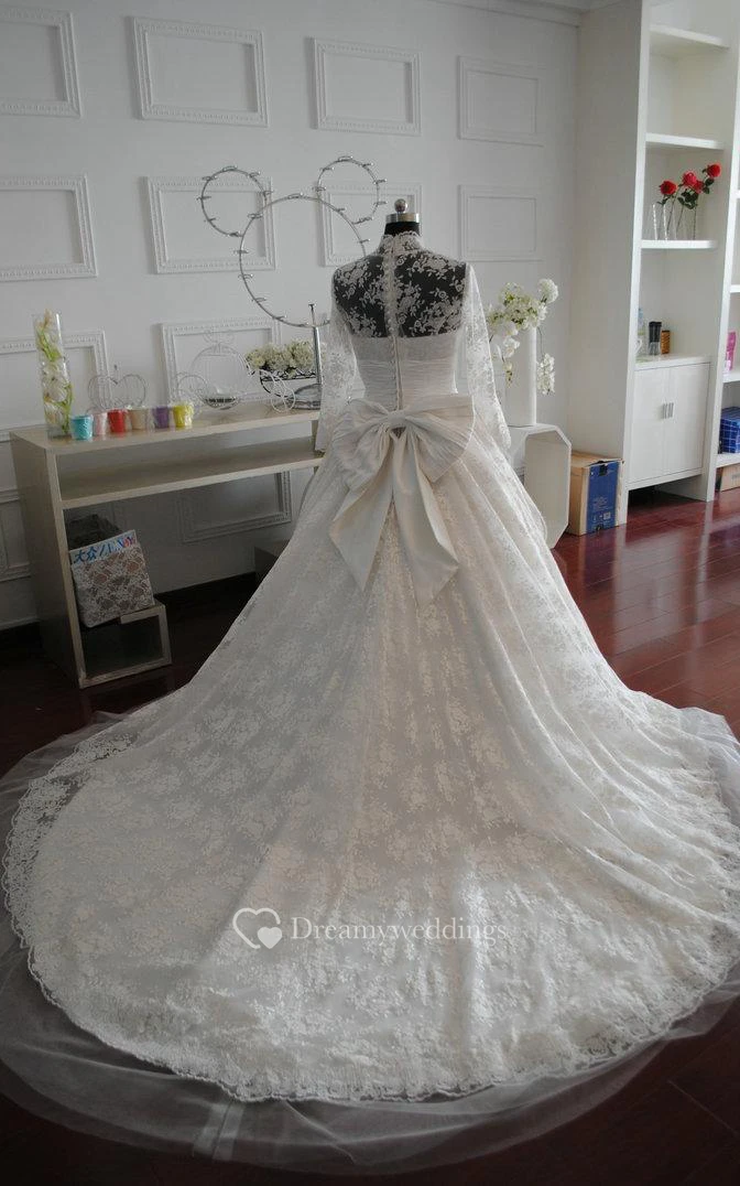A-Line High Neck Long Sleeve Bell Illusion Bow Beading Appliques Illusion Zipper Illusion Lace-Up Back Chiffon Tulle Lace Sequins Organza Satin Taffeta Dress