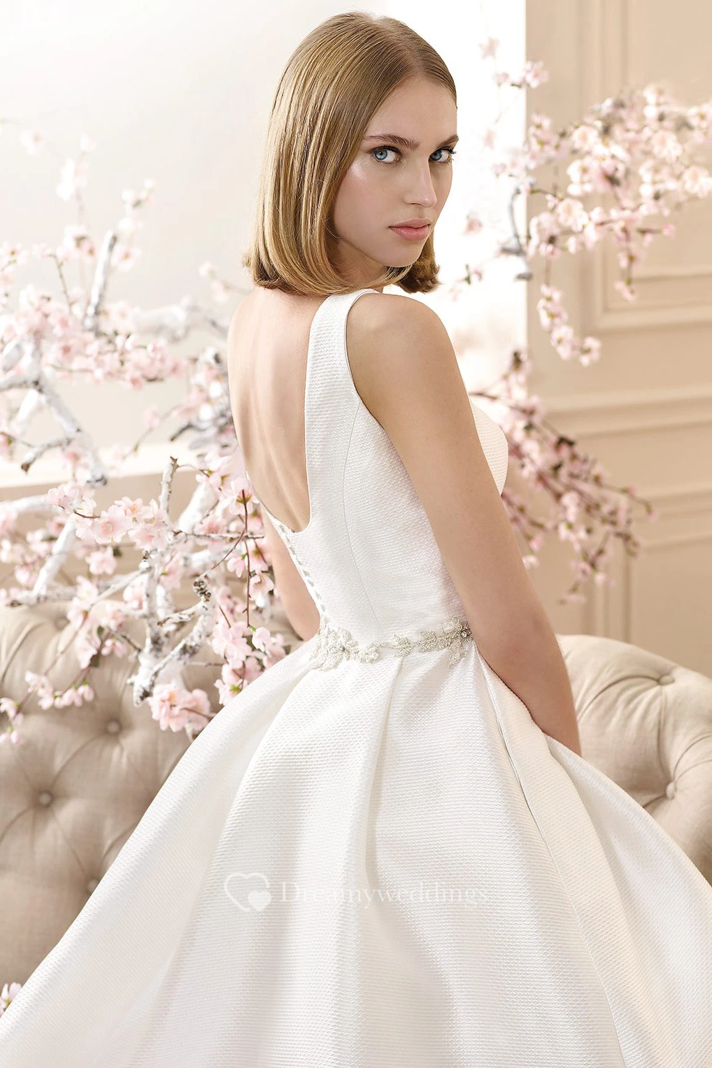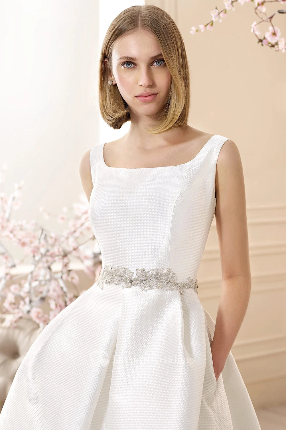 I bought this wedding dress because I desired something modern and minimalist. The dress only took a little over one month to arrive for my wedding. It fits perfectly!!