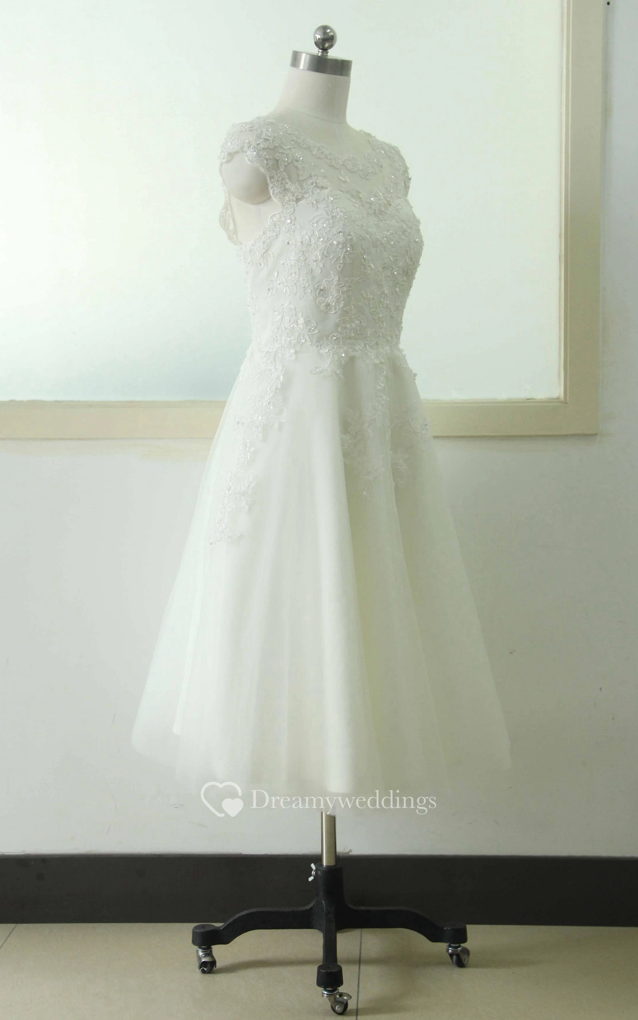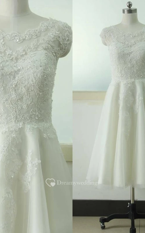 A-Line Knee-Length Cap Beading Flower Zipper Corset Back Chiffon Tulle Lace Sequins Satin Dress