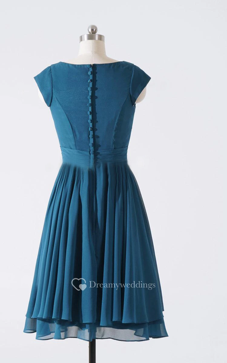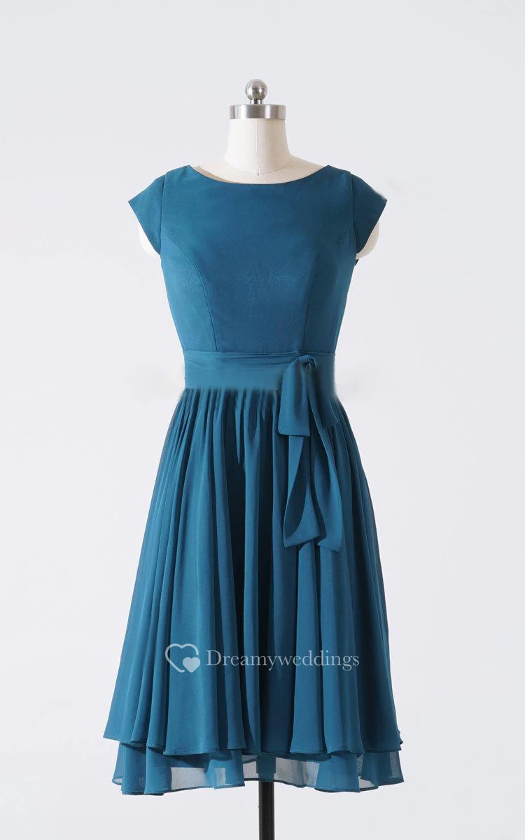 A-line Knee-length Cap Sleeve Chiffon Dress