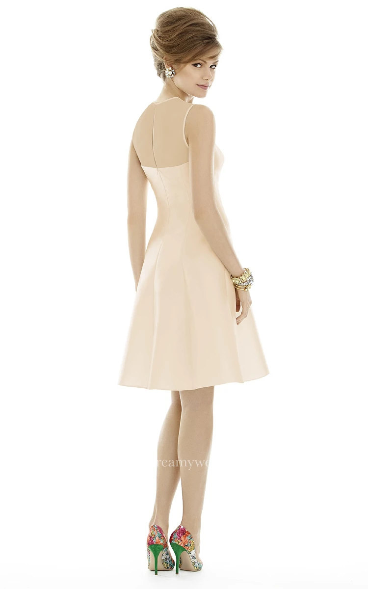 A-Line Knee-Length Illusion Sleeveless Satin Gown