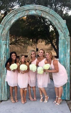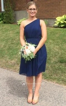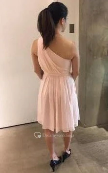 A-line Knee-Length One-shoulder Sleeveless Pleats Chiffon Dress