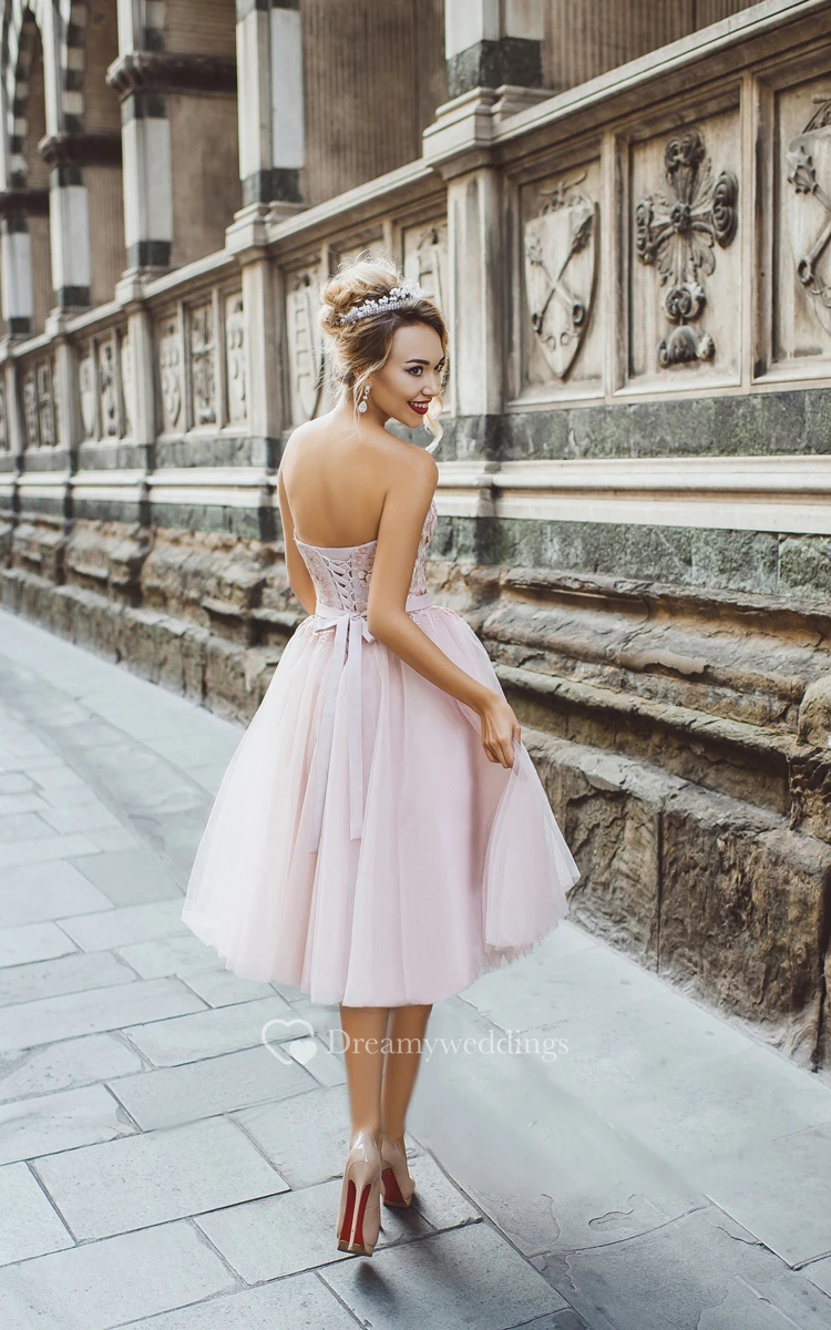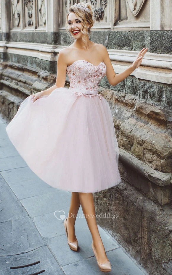 A-Line Knee-Length Sweetheart Sleeveless Tulle Appliques Pleats Lace-Up Dress