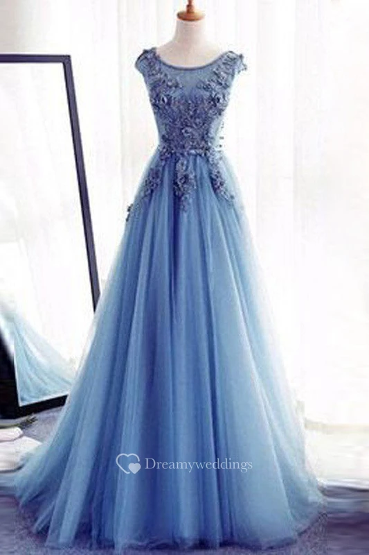 A-Line Lace Tulle Jewel Short Sleeve Lace-up Corset Back Dress