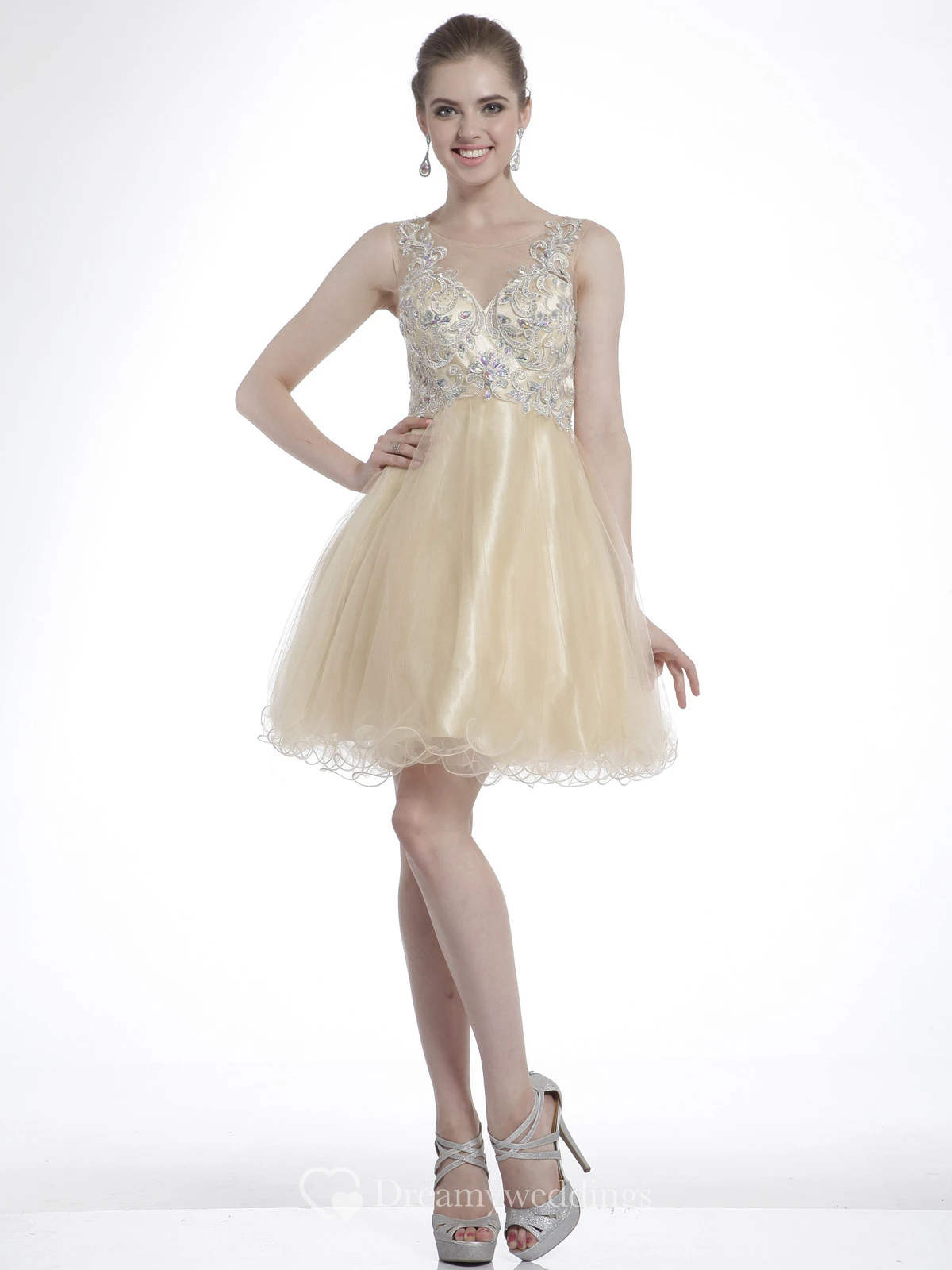 A-Line Long Bateau Sleeveless Tulle Satin Illusion Dress With Beading And Ruffles