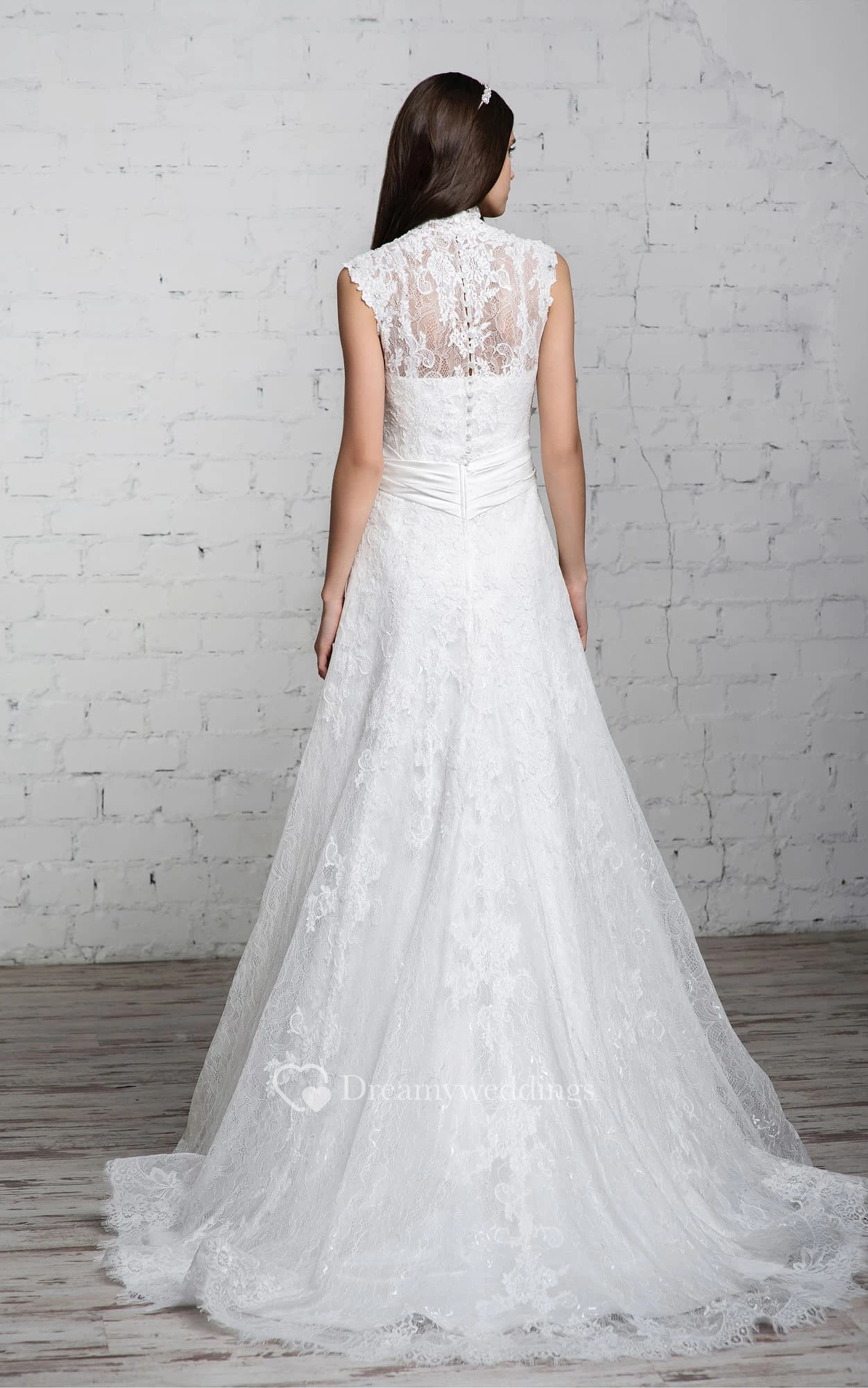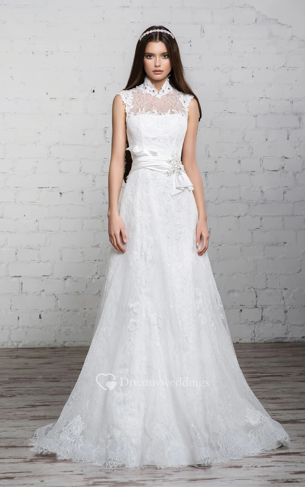 A-Line Long High-Neck Sleeveless Illusion Lace Dress
