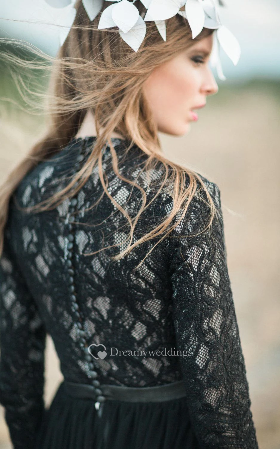 A-line Long Sleeve Chiffon&Lace Dress With Tiers