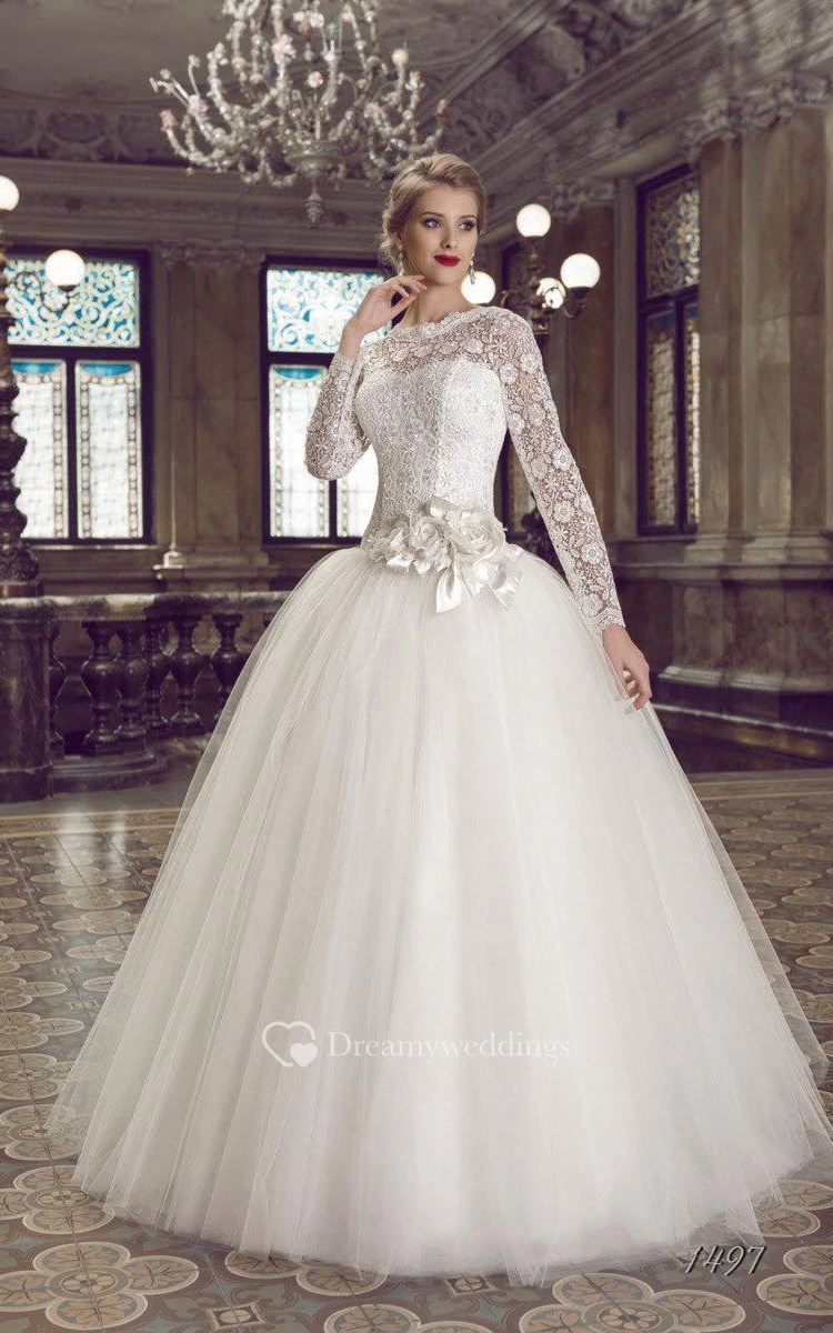 A-Line Long Sleeve Tulle Dress With Split Front Flower Split Illusion