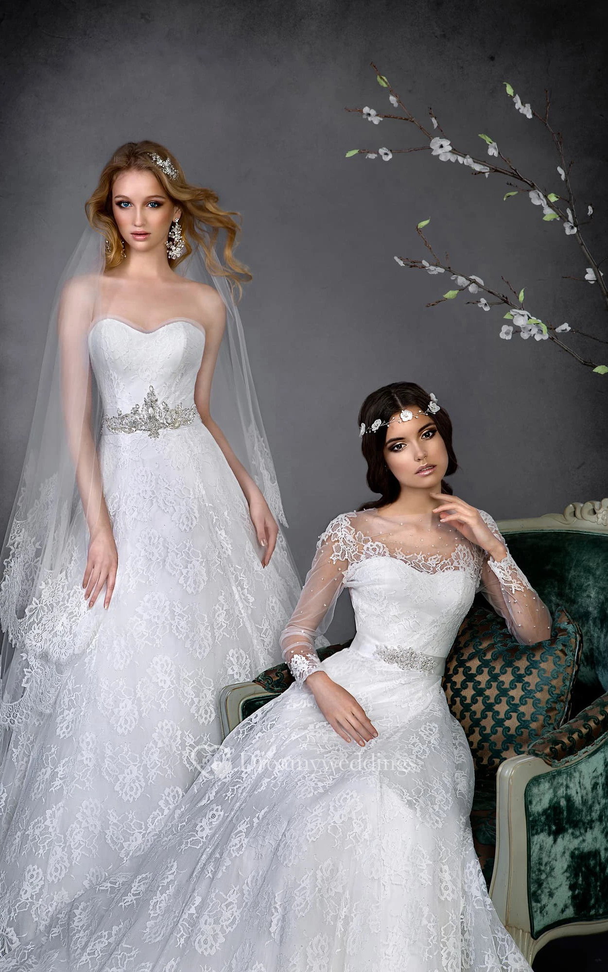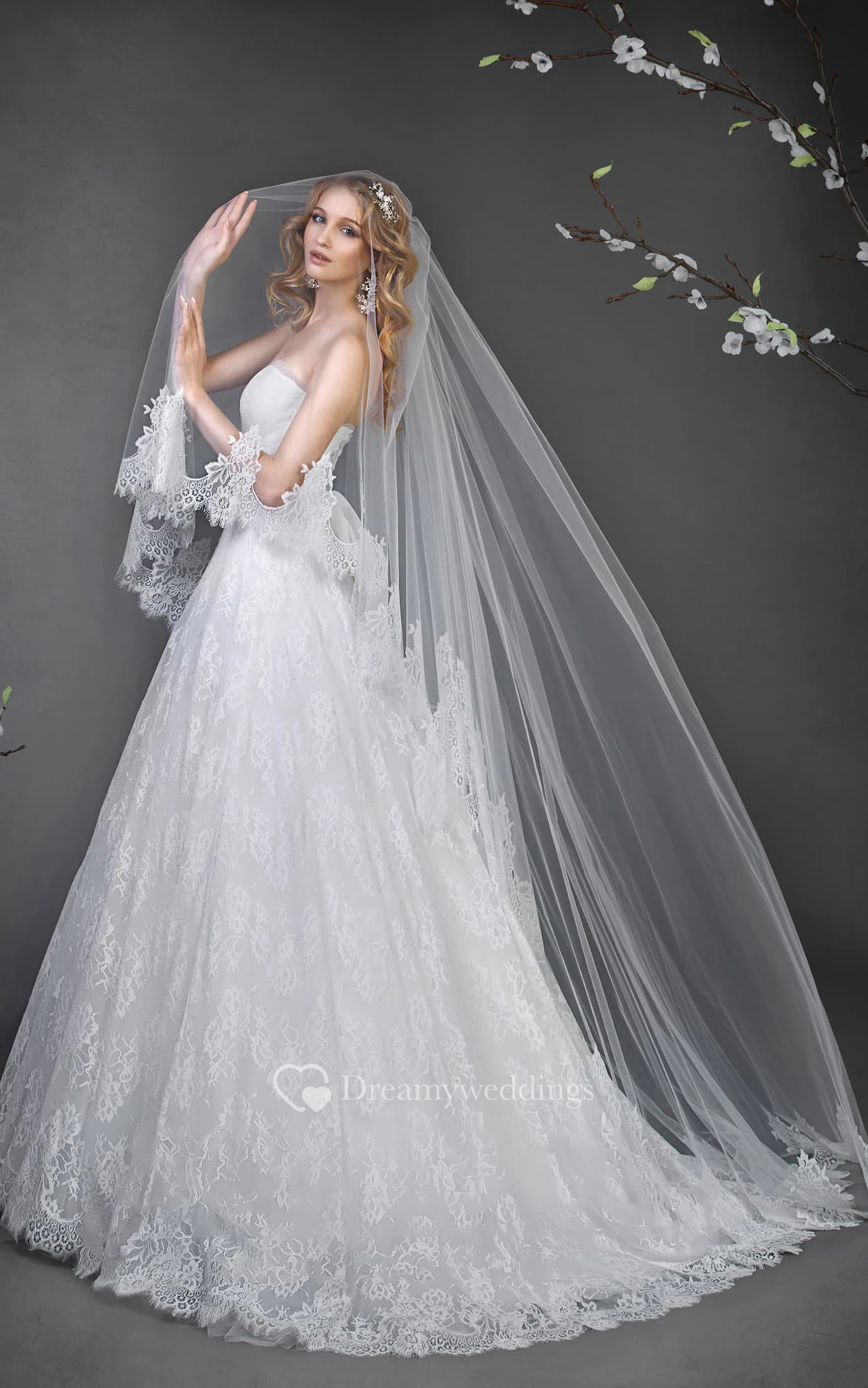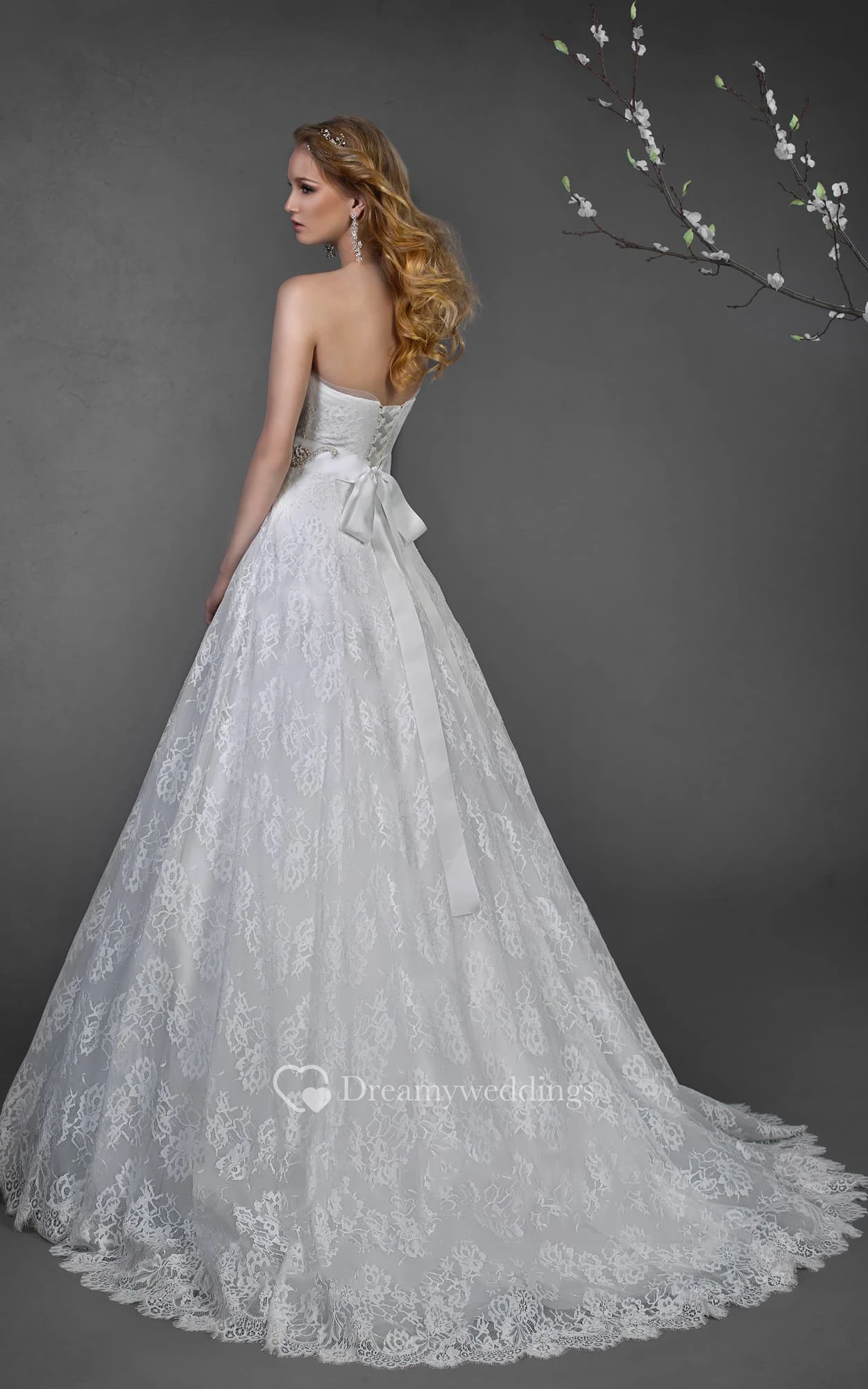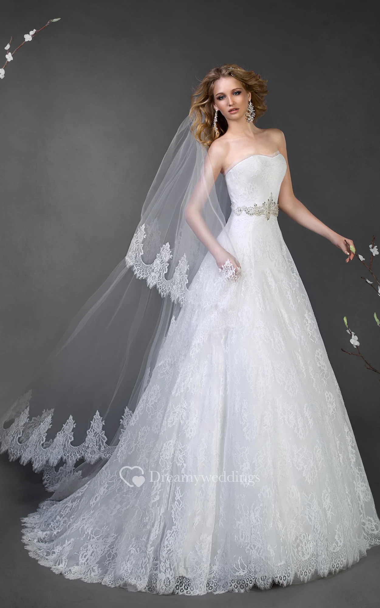 A-Line Long Strapless Sleeveless Corset-Back Lace Dress With Waist Jewellery
