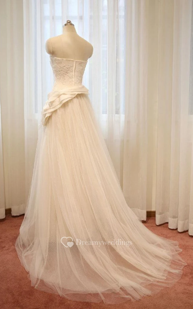 A-Line Long Straps Sleeveless Bell Appliques Zipper Straps Keyhole Tulle Lace Satin Dress