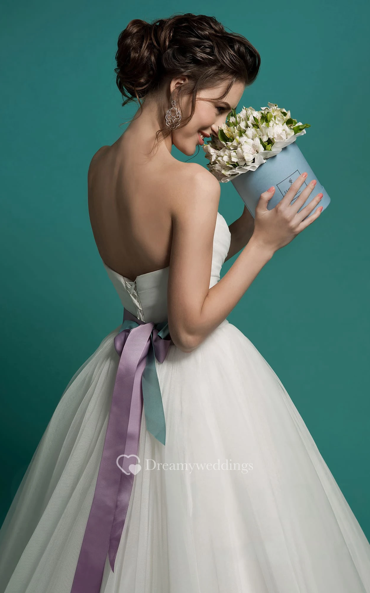 A-Line Long Sweetheart Sleeveless Lace-Up Organza Dress With Ruching