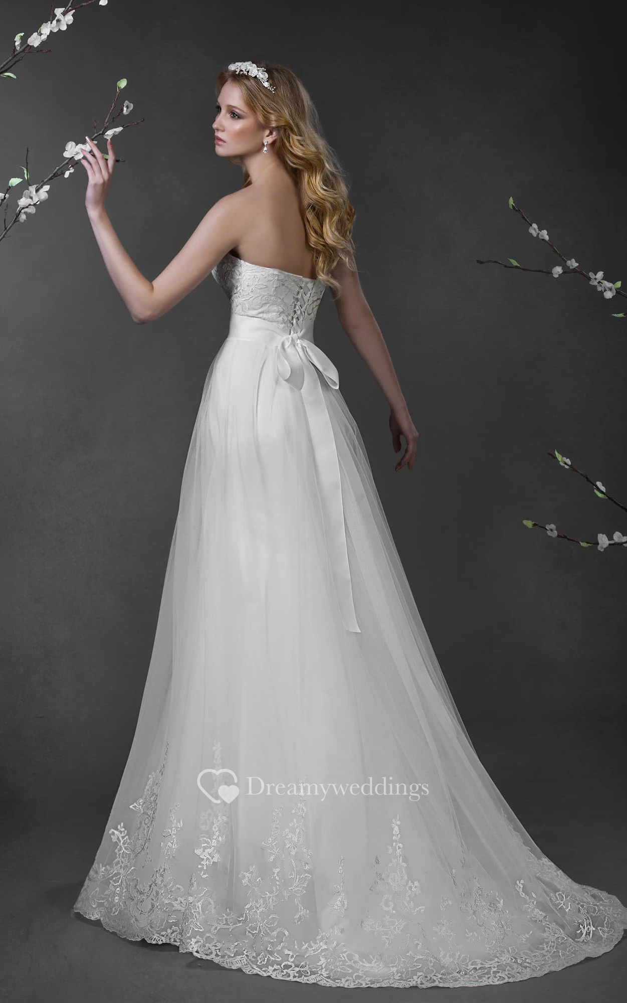 A-Line Long Sweetheart Sleeveless Lace-Up Tulle Dress With Lace And Flower