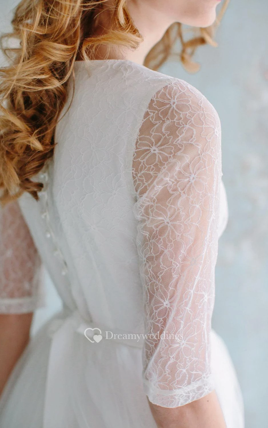 A-Line Long Tulle Lace Satin Dress With Flower Button