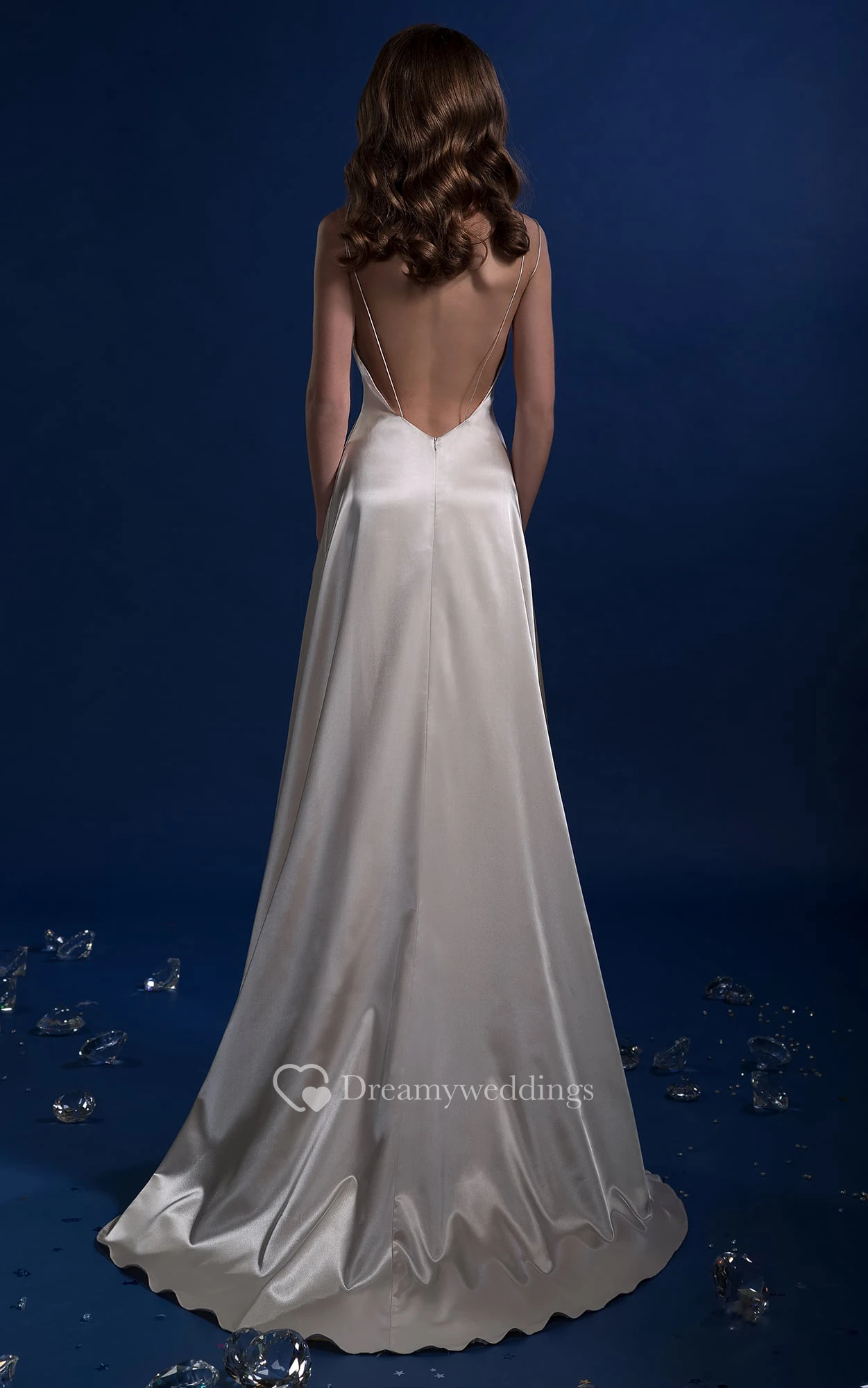 A-Line Long V-Neck Sleeveless Backless Satin Dress