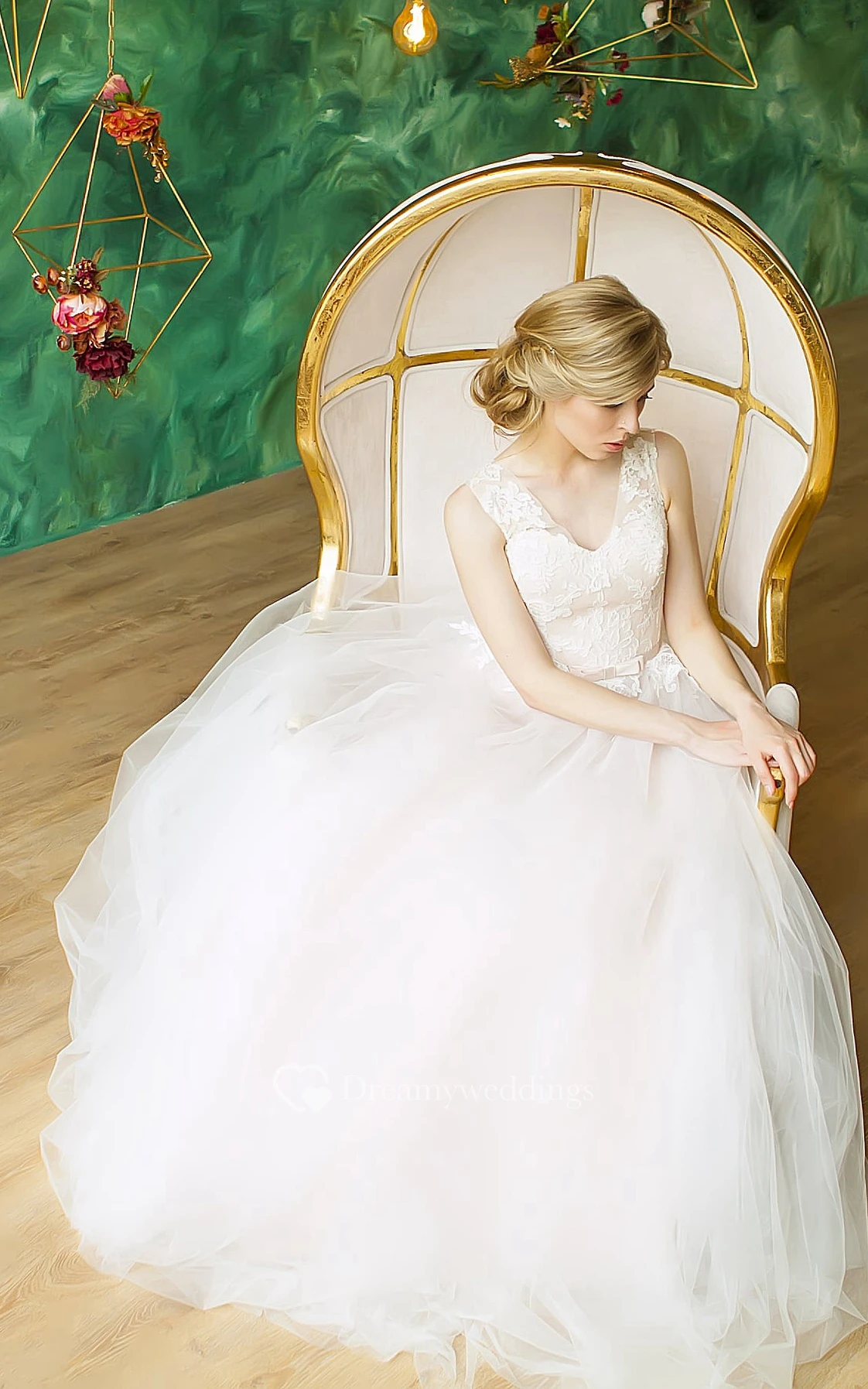 A-Line Long V-Neck Sleeveless Lace-Up Organza Dress With Sash
