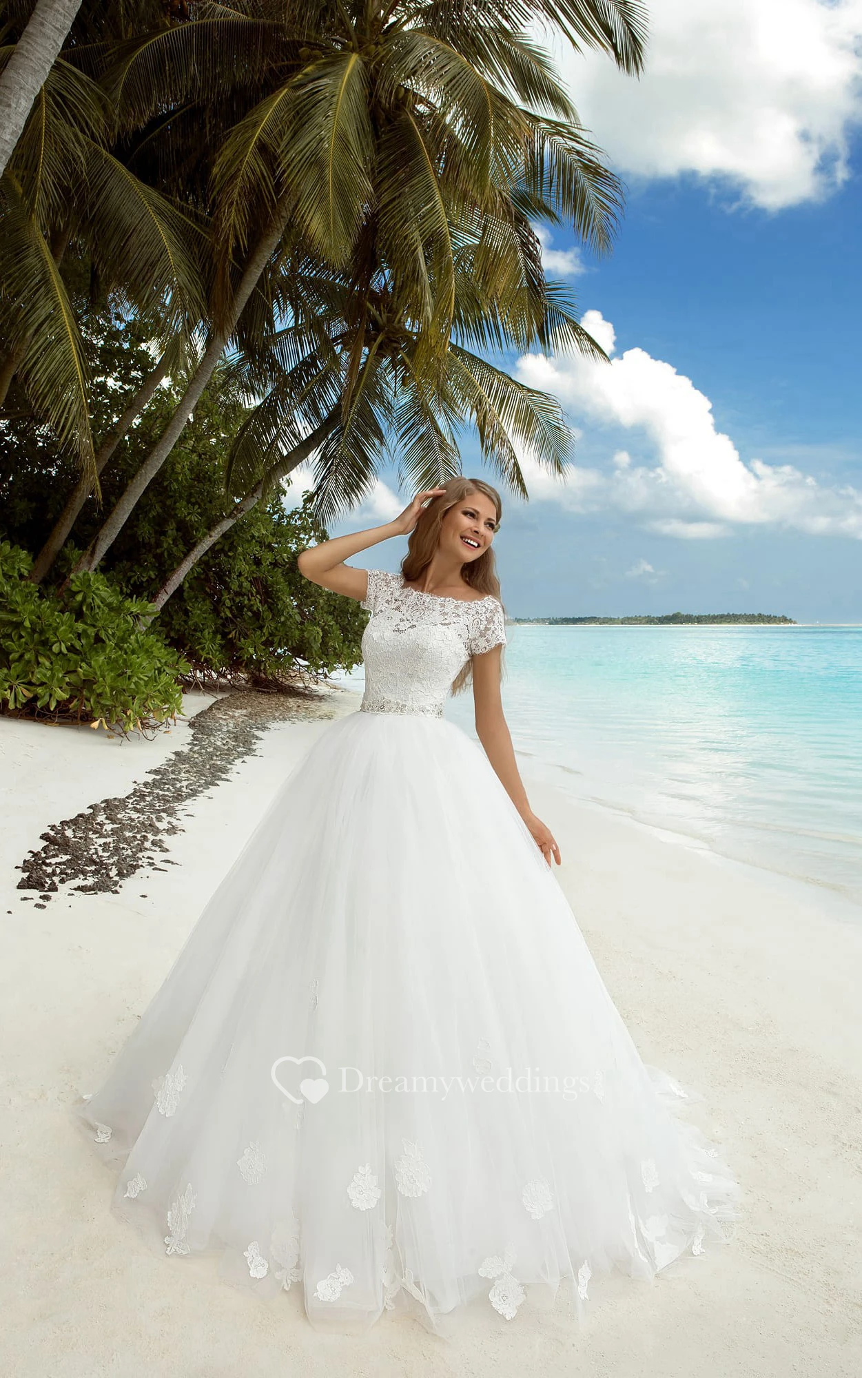 A-Line Maxi Bateau-Neck Long-Sleeve Tulle Dress With Beaded