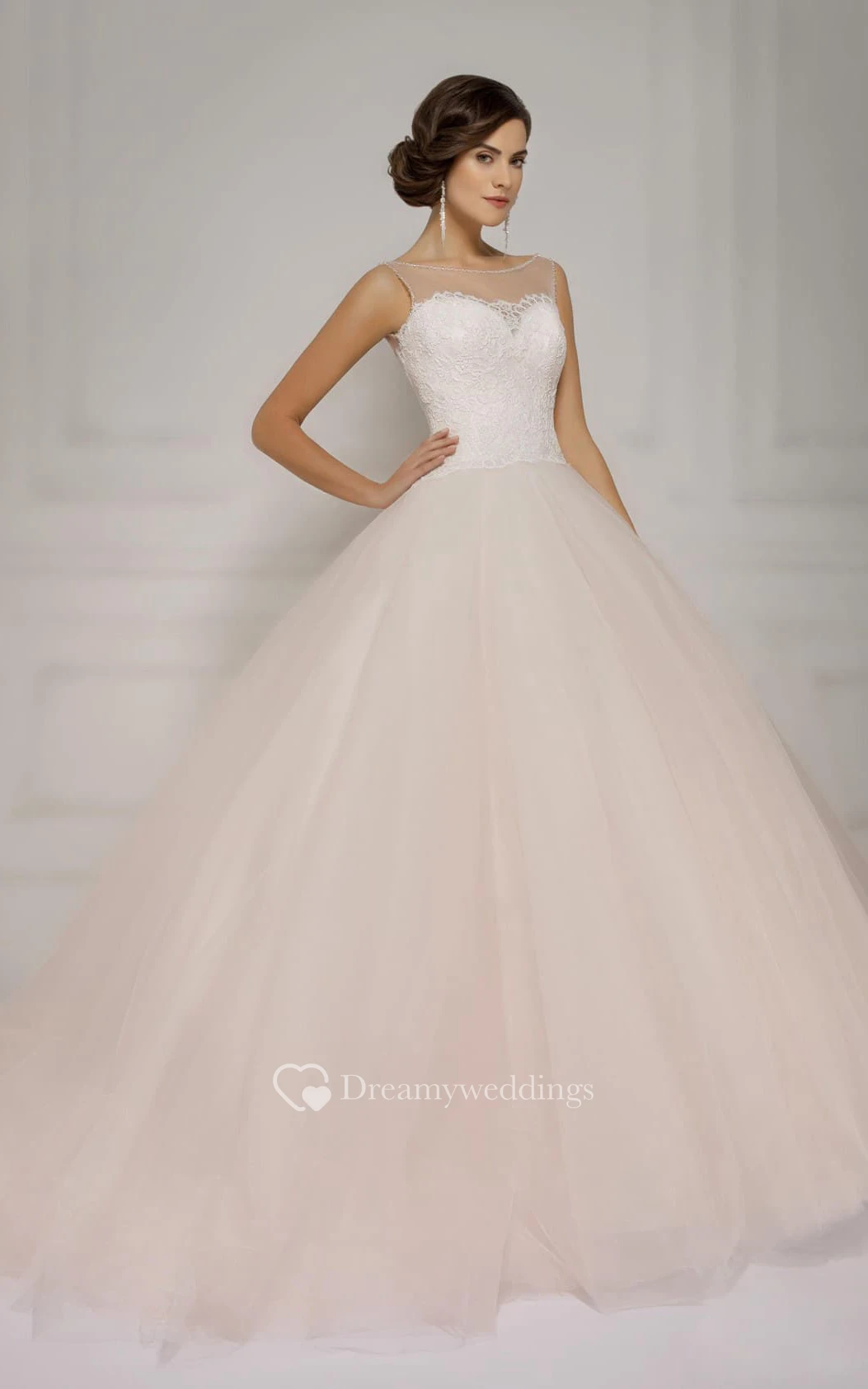 A-Line Maxi Bateau-Neck Sleeveless Lace-Up Tulle Dress With Lace Appliques And Keyhole