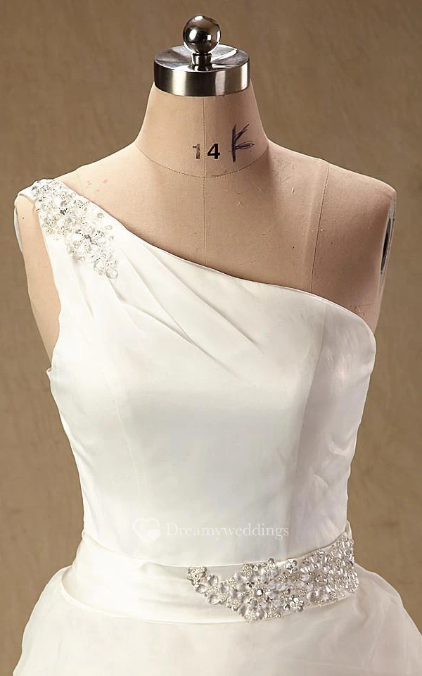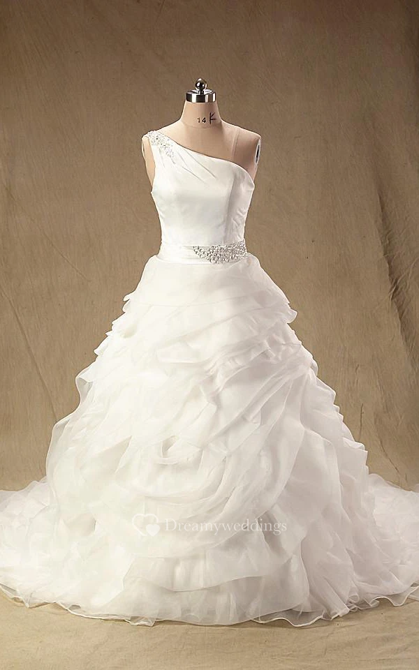 A-Line Maxi One-Shoulder Straps Sleeveless Bell Ruffles Zipper Straps Lace Organza Dress