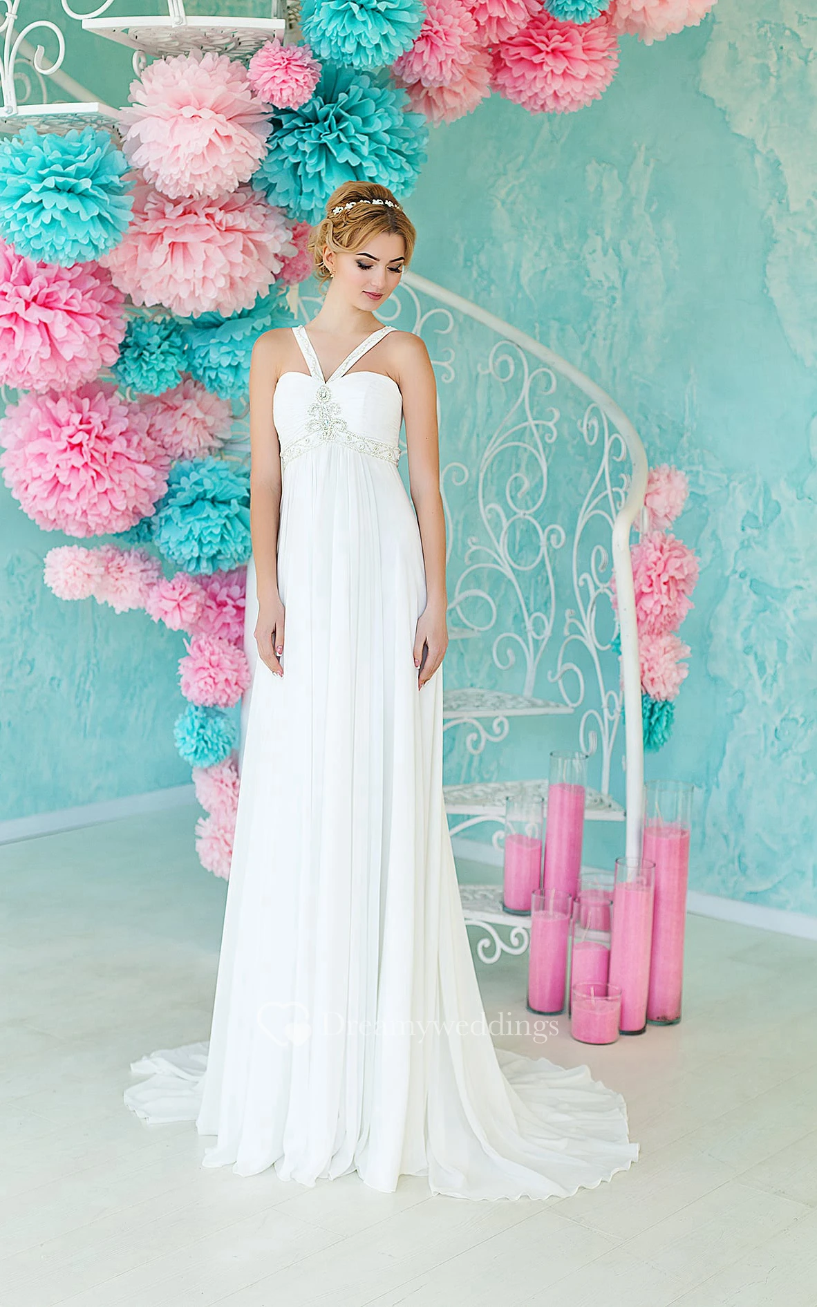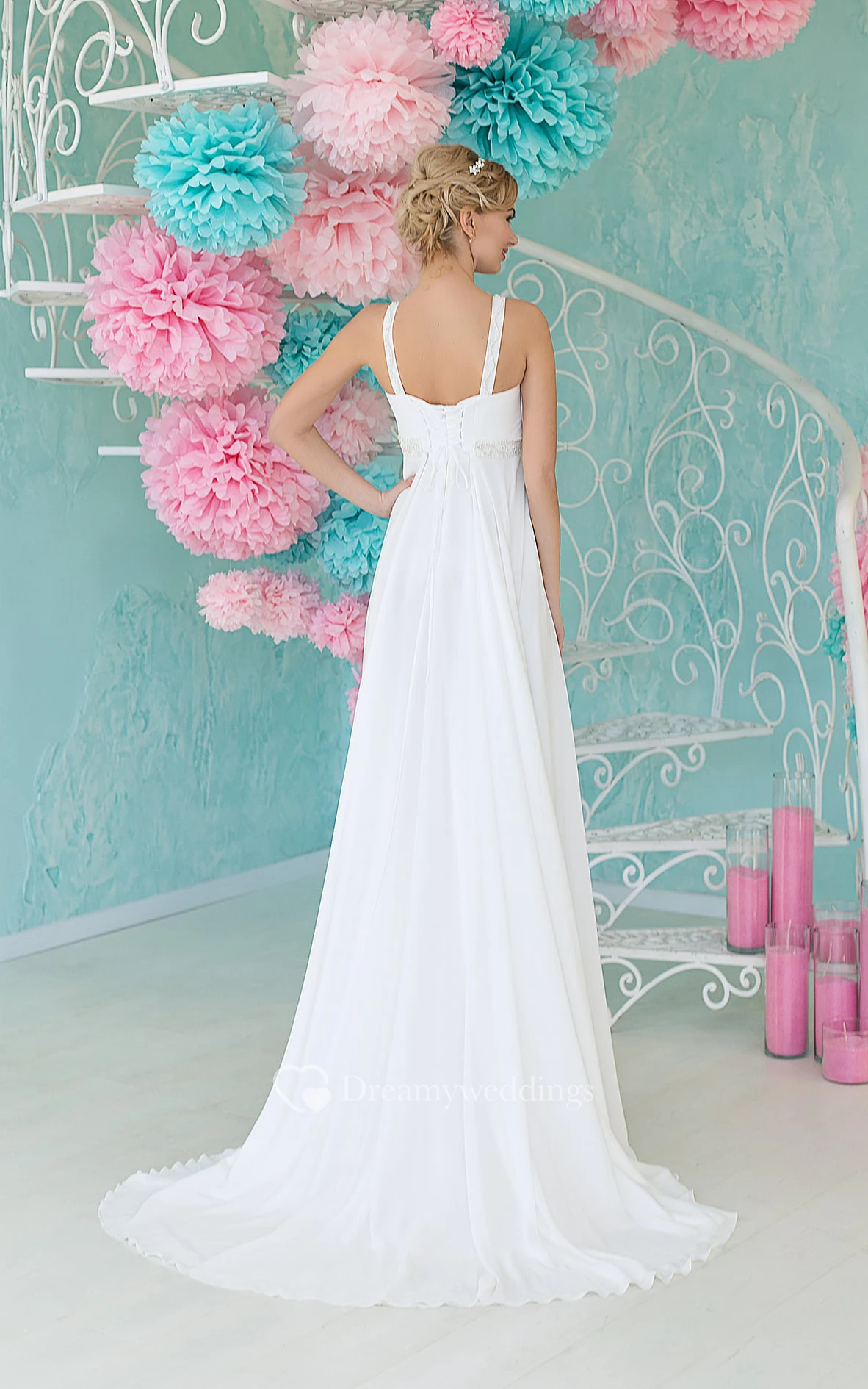 A-Line Maxi Straps Sleeveless Empire Lace-Up Chiffon Dress With Beading And Pleats