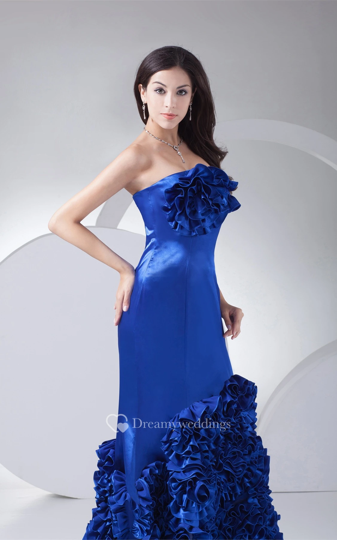 A-Line Maxi Sweep Train and Gown With Ruffles
