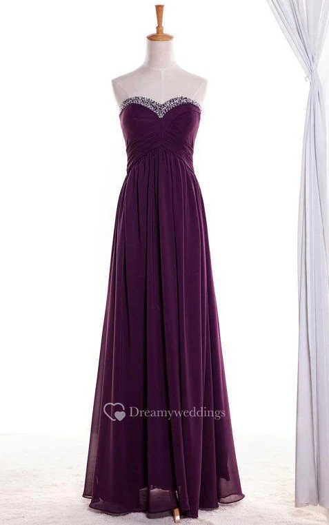 A-line Maxi Sweetheart Bell Beading Chiffon Dress