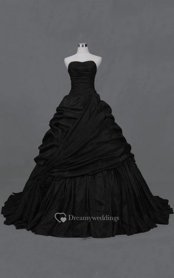 A-Line Maxi Sweetheart Pleats Zipper Lace-Up Back Lace Taffeta Dress