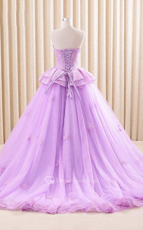 A-Line Maxi Sweetheart Sweep Train Zipper Corset Back Tulle Lace Satin Dress