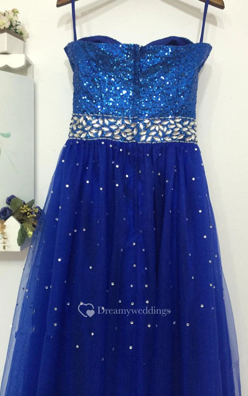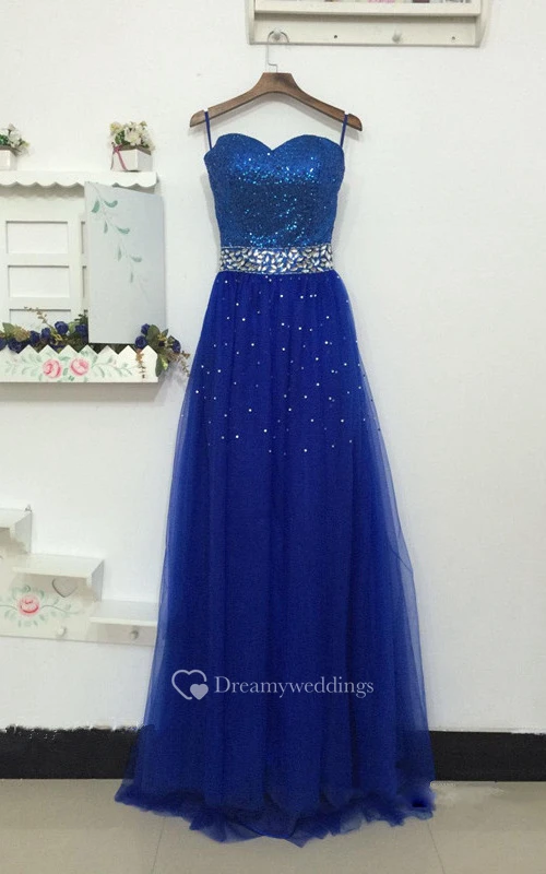 A-line Maxi Sweetheart Tulle Dress With Beading And Sequins