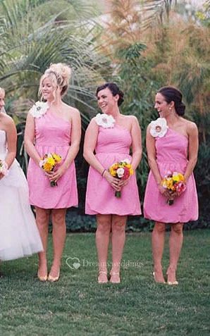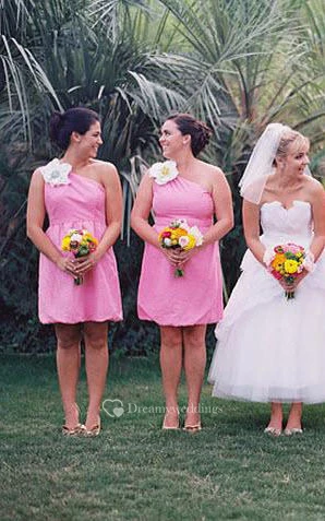 A-line Mini One-shoulder Bell Flower Ruffles Pick Up Flower Zipper Chiffon Dress