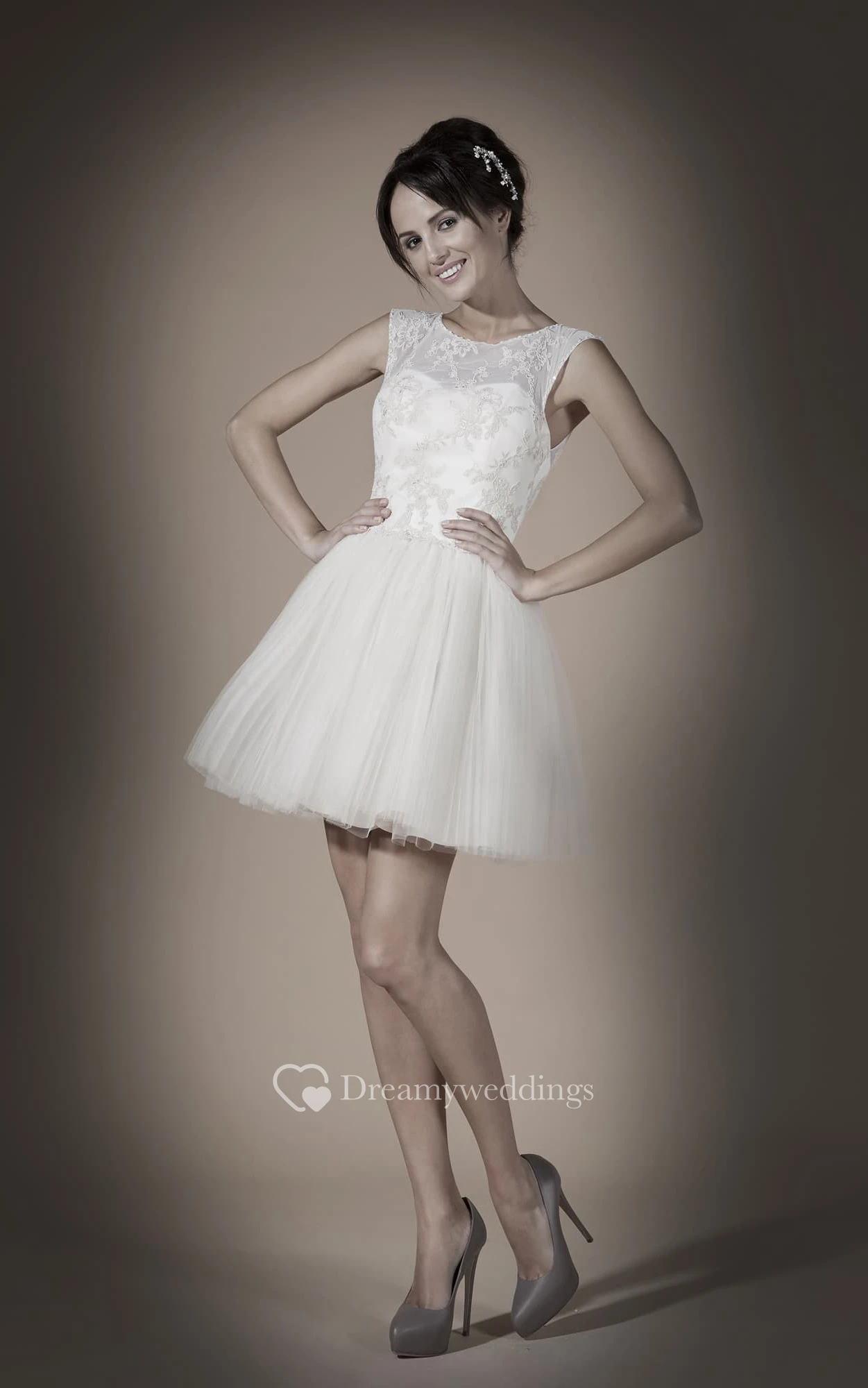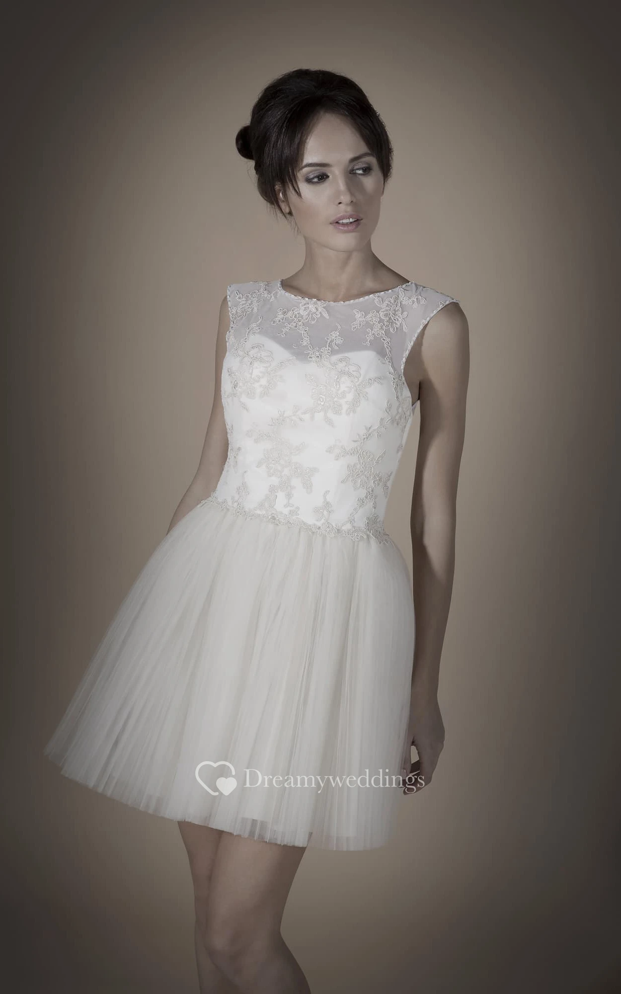 A-Line Mini Scoop Sleeveless Keyhole Tulle Dress With Appliques