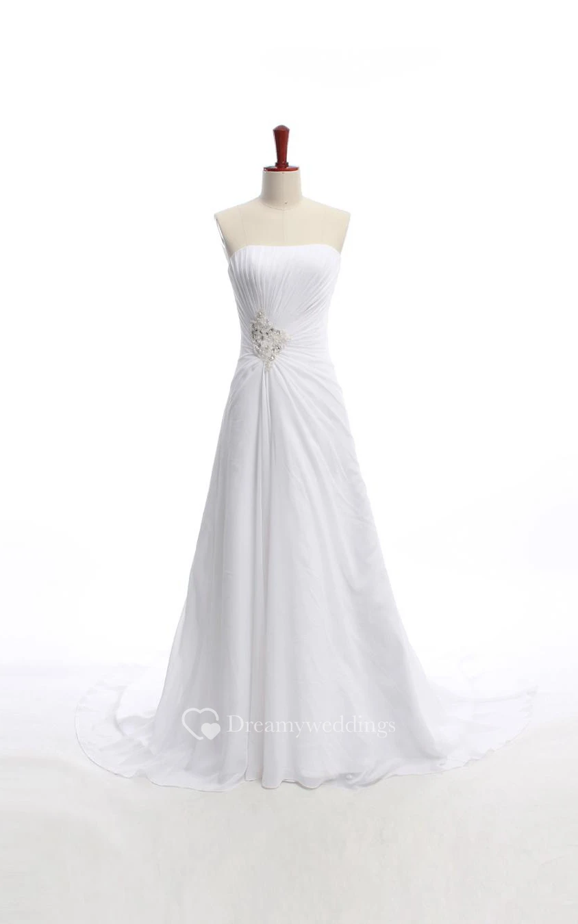 A-Line Mini Straps Bell Chapel Train Button Straps Keyhole Chiffon Lace Dress