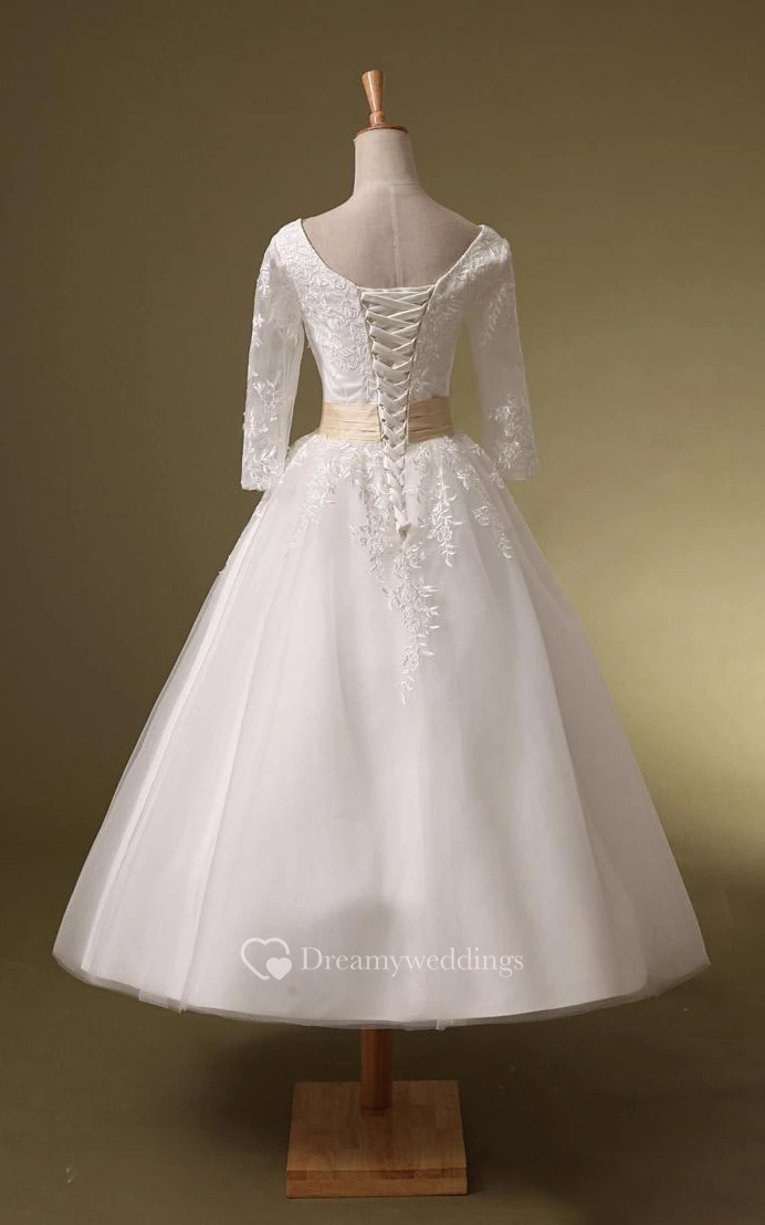 A-Line Mini V-Neck Long Sleeve Bell Draping Pleats Beading Appliques Backless Lace-Up Back Tulle Lace Sequins Dress